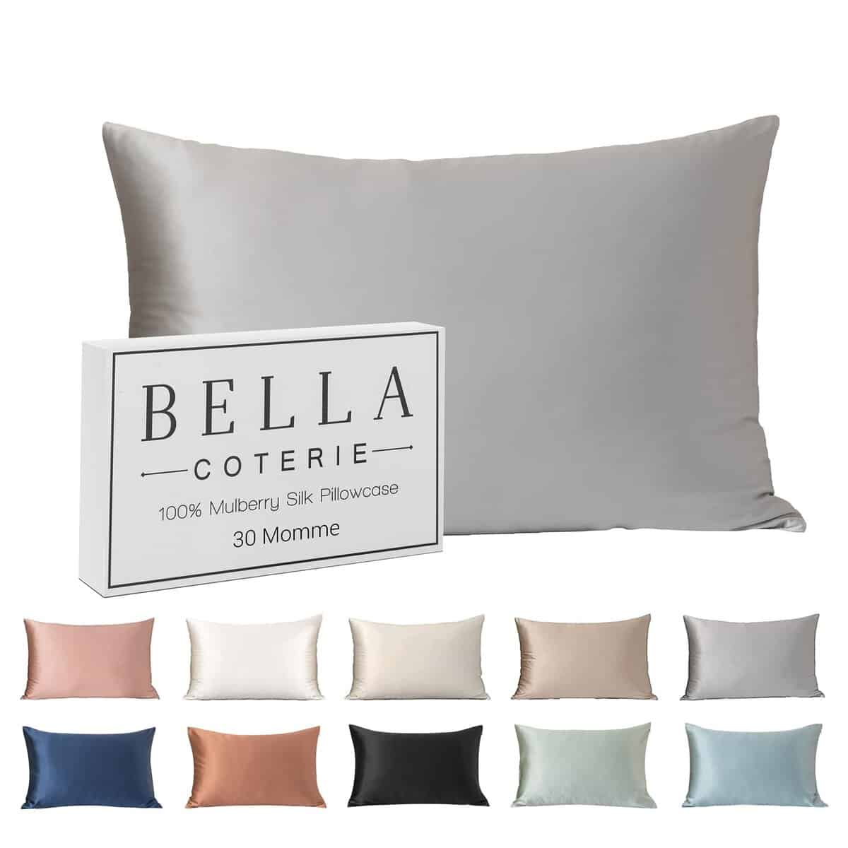 Funda de Almohada de Seda de Lujo Bella -Plateado