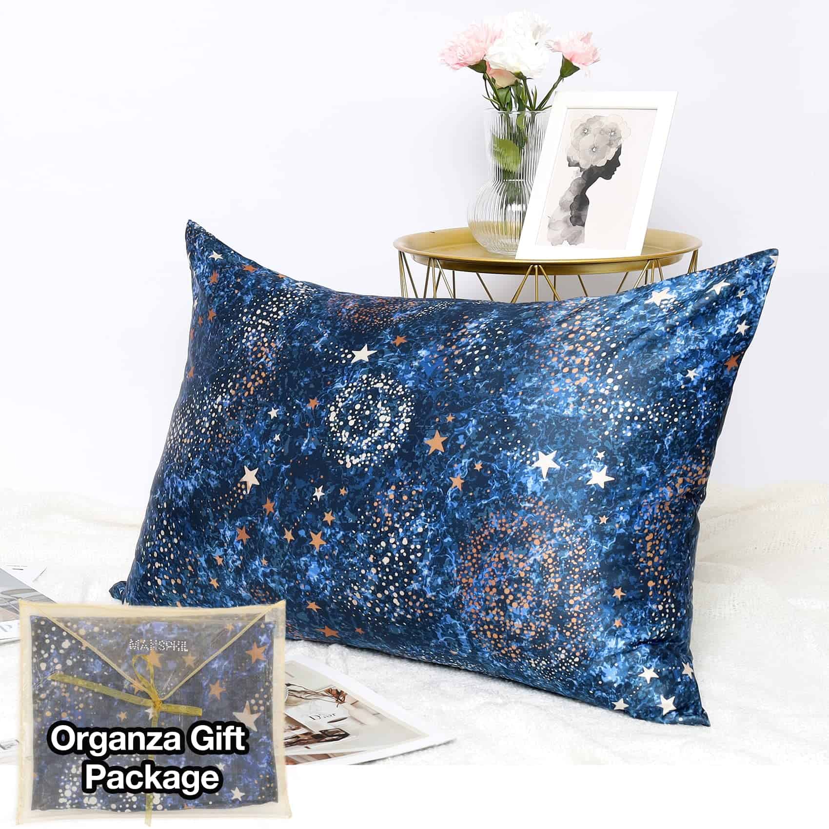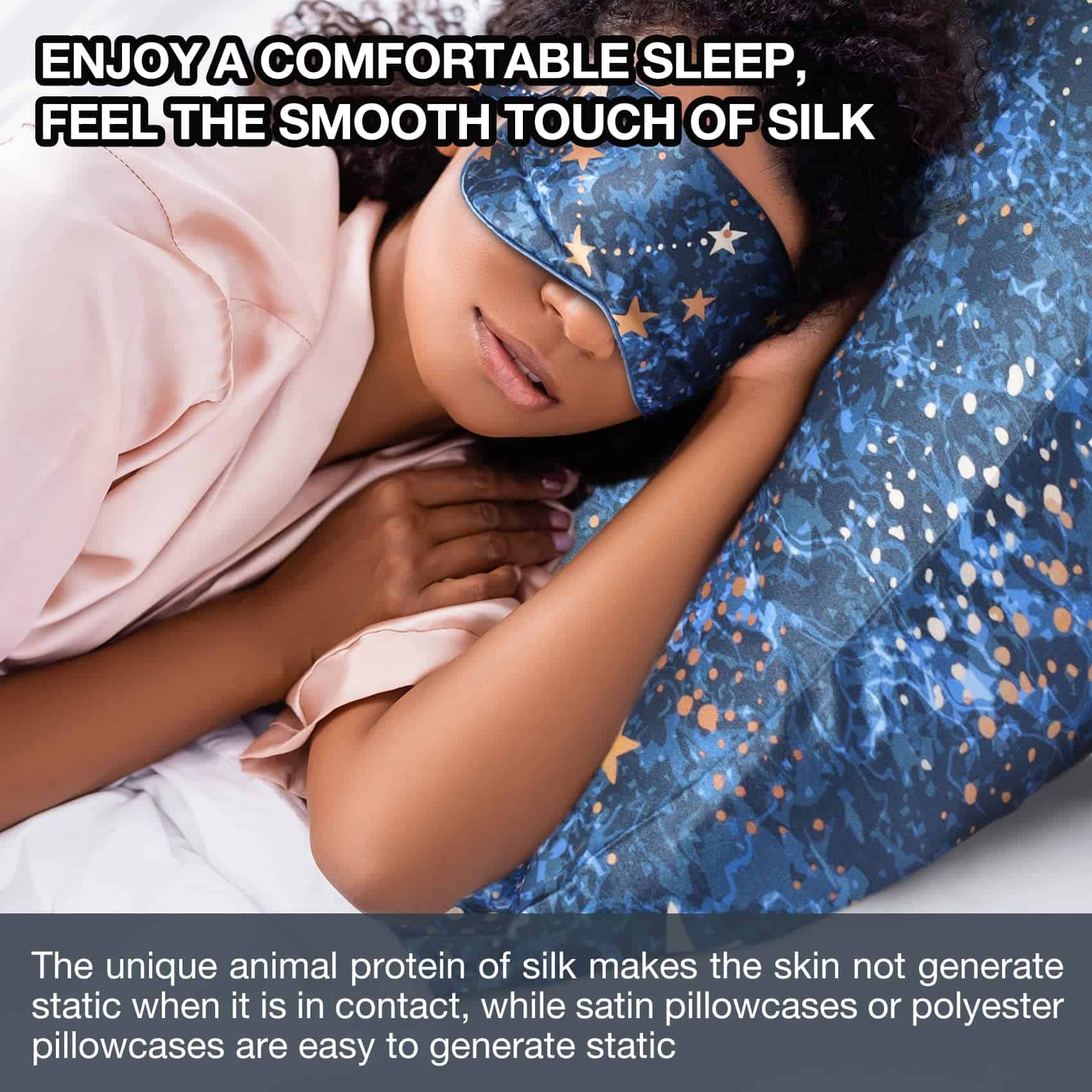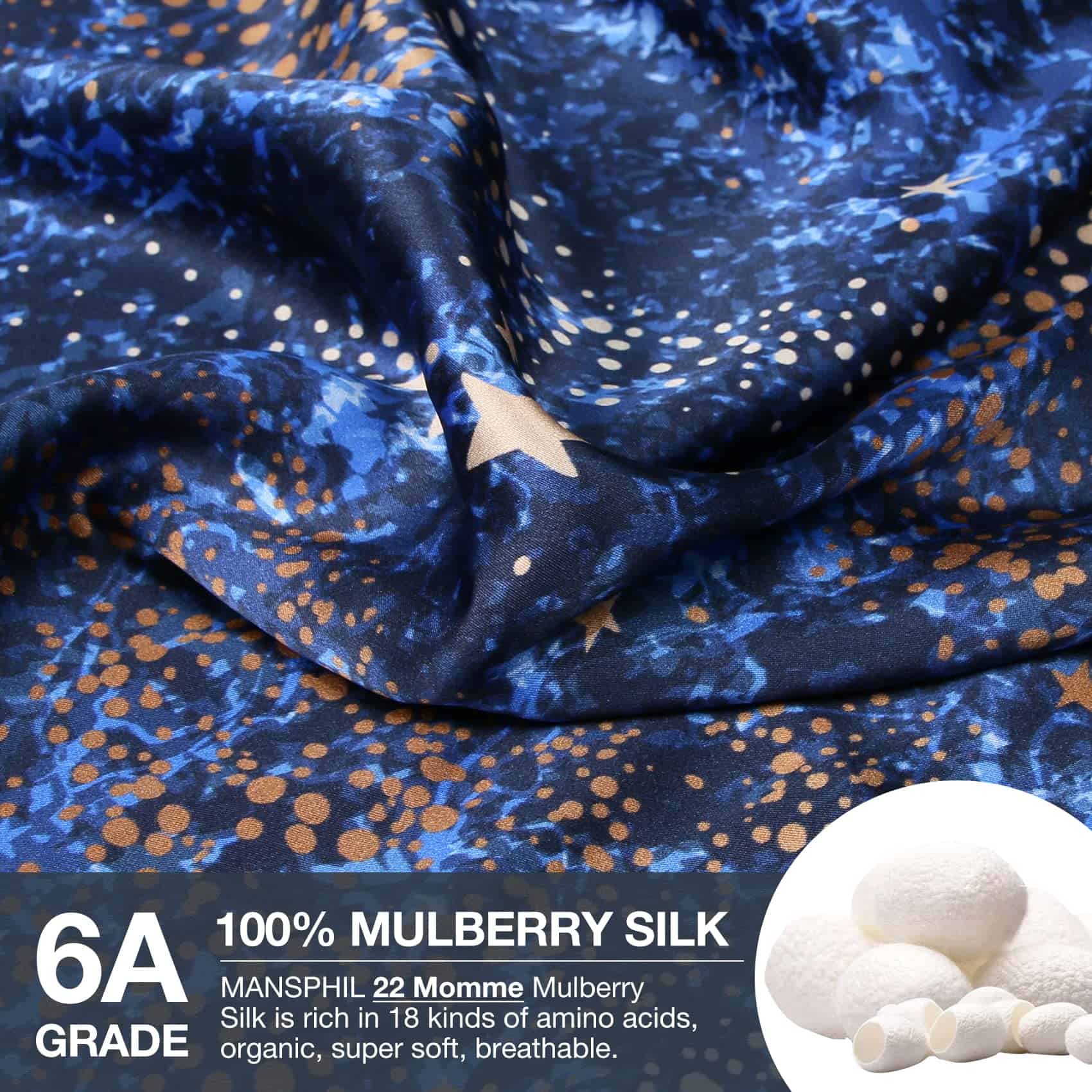 Funda de Almohada de Seda de Morera Azul Marino MANSPHIL Tamaño King, Patrón de Estrellas de la Galaxia, Fundas de Almohada de Seda 100% con Cierre de Cremallera, Cuidado de Belleza para el Cabello y la Piel, 20″x36″/1 Paquete