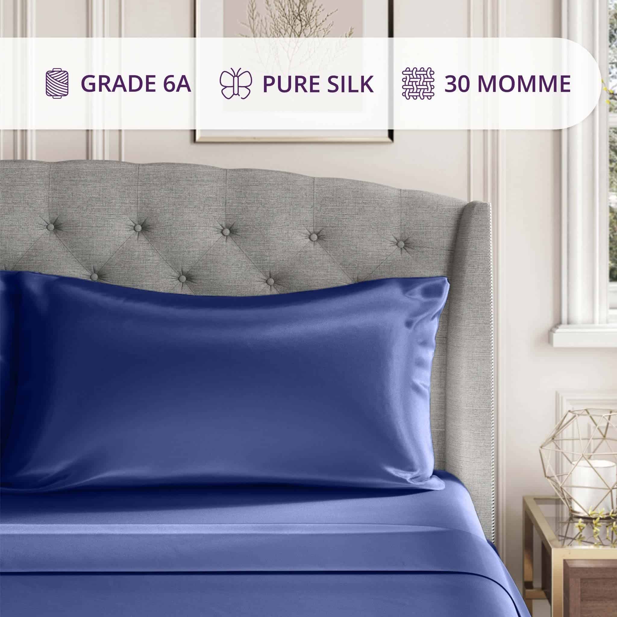 Funda de Almohada de Seda de Morera de 30 -Azul Marino