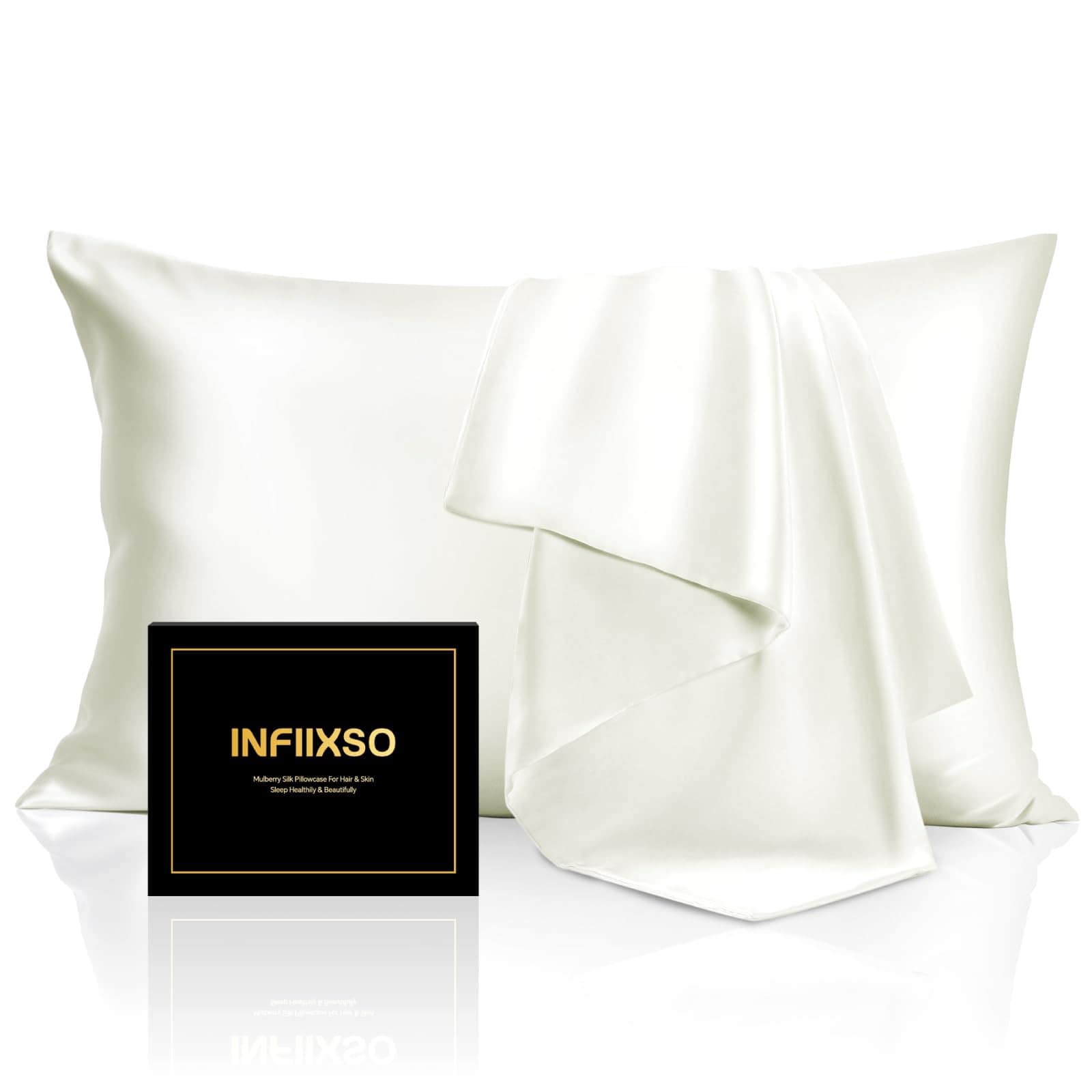 Funda de Almohada de Seda de Morera INFIIXSO -Crema