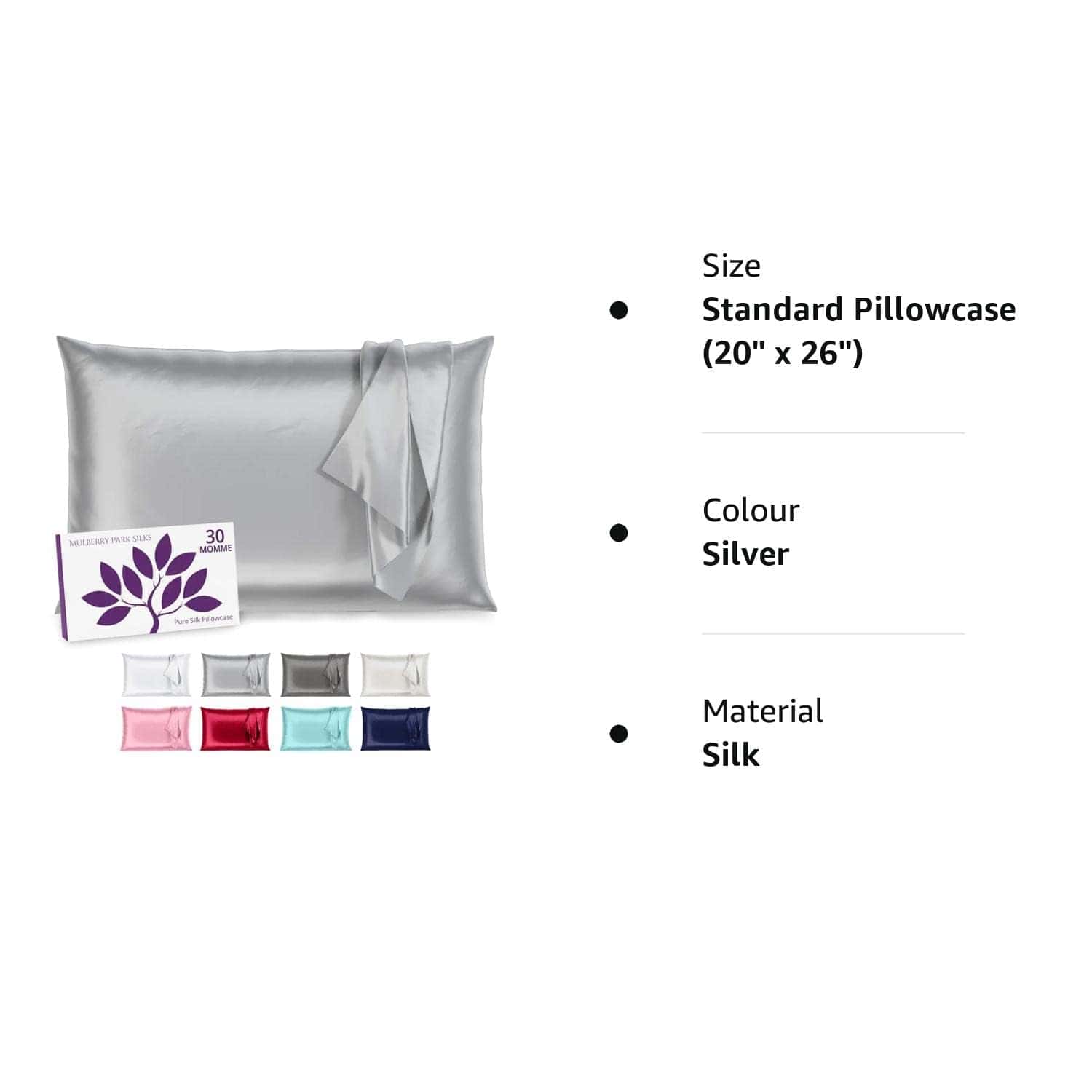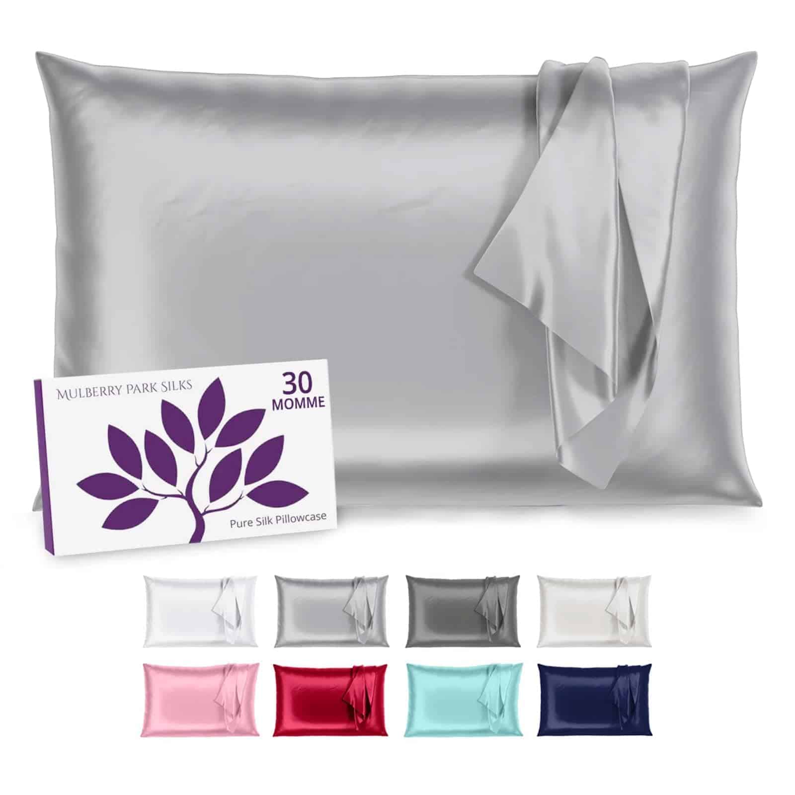 Funda de almohada de seda pura de 30 Momme de Mulberry Park – Funda de almohada de seda pura para cabello y piel, tejido de Charmeuse de seda mulberry real 6A para una noche de lujo – 1 Pza Plateado (Estándar 20» x 26»). Indulge in the unparalleled softness and strength of our 30 Momme Mulberry Silk Pillowcase. Crafted from 100% Grade 6A silk, this heavy-weight silk pillowcase provides a lavish sleep experience while ensuring long-lasting quality. The lustrous Charmeuse weave of our silk pillowcase offers an ultra-smooth surface, minimizing hair tangles, breakage, and facial creases, promoting a clearer complexion and healthier locks. Naturally infused with protein-based amino acids, our pillowcase won’t pull precious moisture from skin and hair, supporting hair regrowth and skin hydration for a rejuvenated morning look. Sleeping on silk is like a beauty treatment for your hair and skin every night! Naturally non-irritating, our silk pillowcase is safe for all skin types, including the most sensitive, ensuring a restful, irritation-free sleep. Our OEKO-TEX STANDARD 100 Certification ensures no harsh chemicals are used during the making of our products. Our silk products are designed in the USA at our Connecticut office where are team of silk experts are available to assist if you ever have questions about your silk. Our 30 Momme pillowcases are finished with French Seams for added durability and feature an extra-deep Envelope Closure for securing your pillow with no zippers.