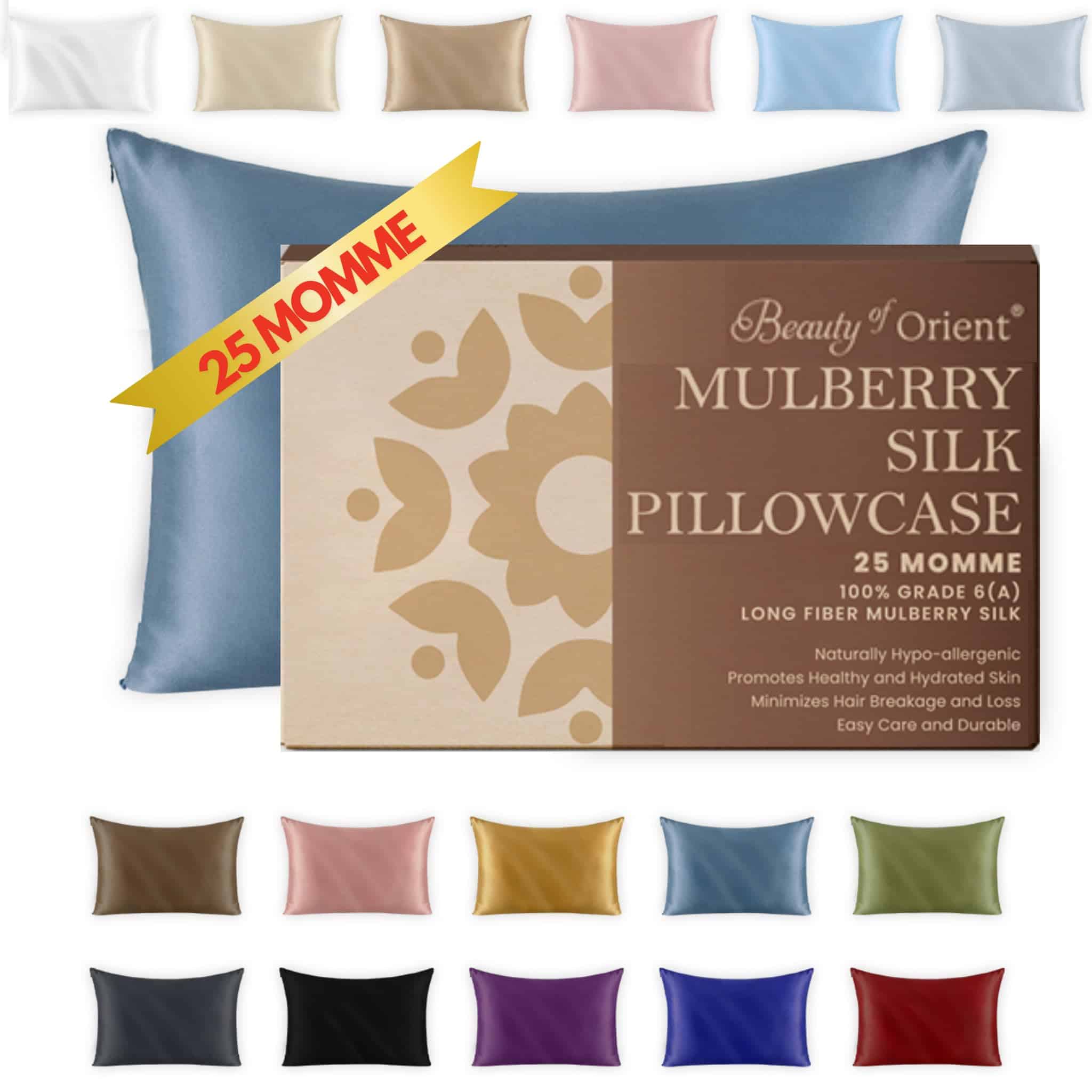 2. CALIDAD DE SEDA PREMIUM: Nuestras fundas de almohada están hechas del más alto grado de seda de morera de fibra larga 6A, ofreciendo un 30% más de seda que las opciones de 19 Momme. Libres de tintes y productos químicos dañinos, estas fundas de almohada de seda pura garantizan un sueño natural y reparador. 3. BENEFICIOS DE BELLEZA: Nuestras fundas de almohada de seda para cabello y rostro están enriquecidas con 18 aminoácidos que nutren su piel y cabello. Reduzca arrugas, acné y daño capilar, mientras mantiene rizos y previene quiebres. Despierte con una piel y cabello más saludables cada día. 4. HIPOALERGÉNICO Y FRESCO: Naturalmente hipoalergénicas, nuestras fundas de almohada de seda 100% tamaño king promueven una mejor respiración y sueño, especialmente para las personas alérgicas. Las propiedades reguladoras de temperatura de la seda lo mantienen fresco en verano y cálido en invierno para un sueño cómodo durante todo el año. 5. ESTILO ELEGANTE: Disponibles en ocho colores impresionantes y tres tamaños (ESTÁNDAR, REINA, KING), nuestras fundas de almohada de seda agregan un toque de elegancia a cualquier dormitorio. Elija la combinación perfecta para su ropa de cama y eleve su espacio de sueño con estilo.