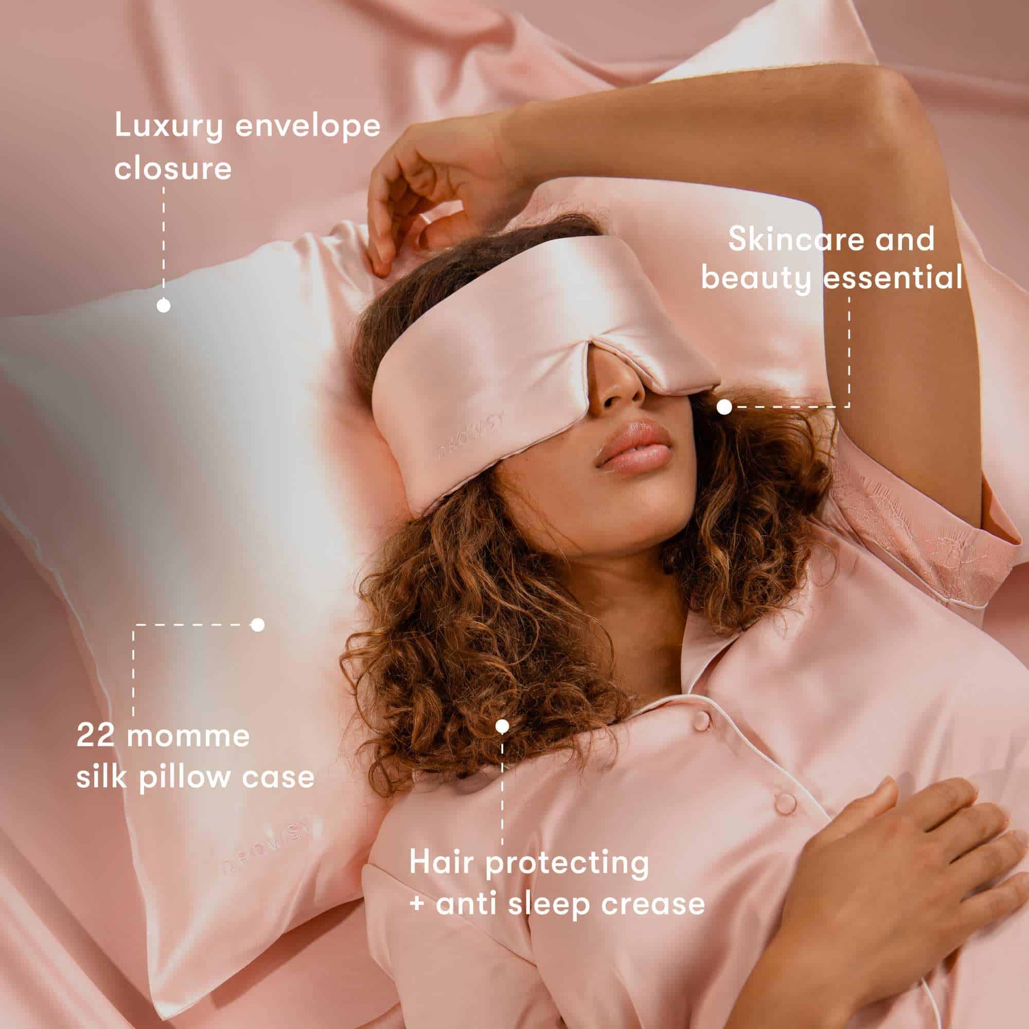 Funda de Almohada de Seda Drowsy – 100% Seda de Morera Pura – 22 Momme 6A Fibras de Alta Calidad – Beneficios para la Piel, el Cabello y el Sueño – Apertura tipo Sobre (Queen, Rosa Atardecer)
