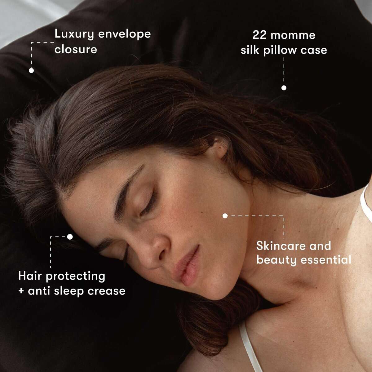 Funda de Almohada de Seda Drowsy – 100% Seda -Negro Jade