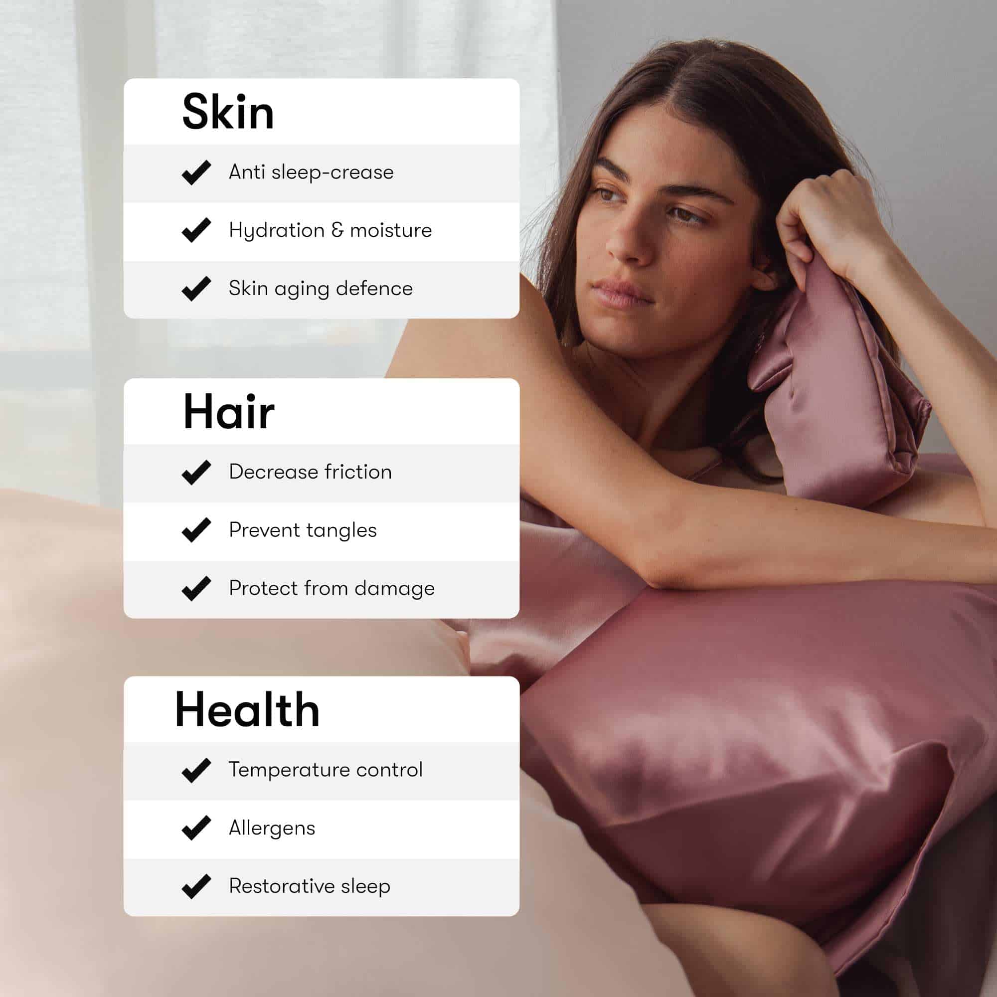 Funda de Almohada de Seda Drowsy – 100% Seda -Rosa Damasco