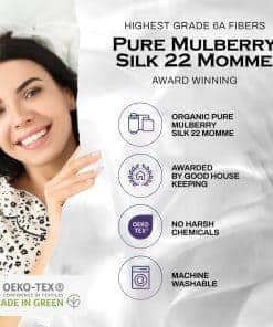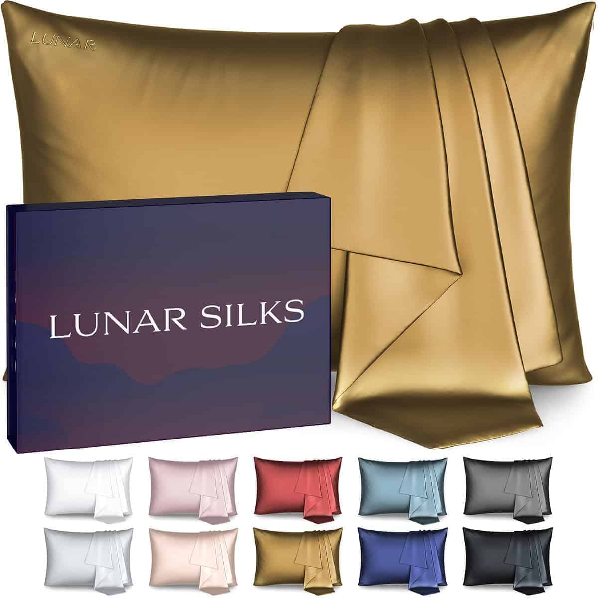 Funda de Almohada de Seda Lunar, Grado más Alto 6A 100% Pura de Morera Real 22 Momme (Ambos Lados) para Cabello y Piel – Libre de Acné – 1 Pieza en Caja de Regalo (Savannah Gold, Queen) Despierta con un brillo saludable! Nuestra suave y suave funda de almohada de seda de morera para cabello y piel es recomendada por expertos en salud y belleza, así como por celebridades, para la mejor experiencia de mejilla a almohada. Nuestra funda de almohada de seda pura está hecha con seda orgánica de la más alta calidad, Certificada OEKO-TEX, su tejido Charmeuse es súper suave, refrescante y no absorbente, lo que la hace ultra transpirable, previniendo brotes y reduciendo las arrugas del sueño. Nuestra funda de almohada de seda orgánica contiene potentes aminoácidos que la hacen ideal para pieles sensibles. No es belleza si te despiertas con un pelo desordenado, arrugas o imperfecciones, ¡eso es mucho trabajo! A diferencia del algodón, satén o fundas de almohada de seda comunes que enredan y secan tus aceites naturales mientras duermes, nuestra funda de almohada de seda 100% es rica en proteínas que permiten la restauración del cabello y la piel. Nuestras fundas de almohada refrescantes ayudan a prevenir el acné y las arrugas mientras duermes. ¡Somos geniales en la cama! No enredamos tu cabello, no secamos tu piel, no te damos arrugas ni sudores nocturnos, además nuestra funda de almohada de seda con cremallera mantiene tu almohada dentro y fuera de la vista