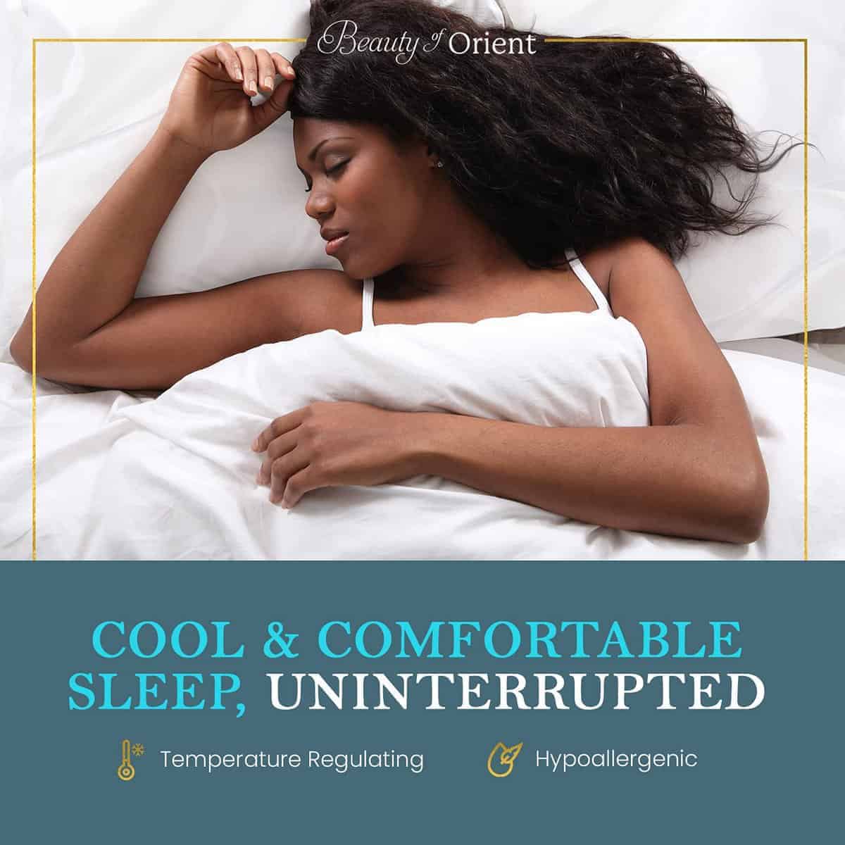1. LUJO HECHO A MANO: Las fundas de almohada de seda de 25 Momme de Beauty of Orient son meticulosamente hechas a mano para una calidad y durabilidad superiores. Con cierres de cremallera ocultos, estas fundas de almohada permanecen perfectamente en su lugar para una experiencia de sueño de lujo. 2. CALIDAD DE SEDA PREMIUM: Nuestras fundas de almohada están hechas del más alto grado de seda de mora de fibra larga 6A, ofreciendo un 30% más de seda que las opciones de 19 Momme. Libres de tintes y químicos dañinos, estas fundas de almohada de seda pura garantizan un sueño natural y reparador. 3. BENEFICIOS DE BELLEZA: Nuestras fundas de almohada de seda para cabello y rostro están enriquecidas con 18 aminoácidos que nutren tu piel y cabello. Reduce arrugas, acné y daño en el cabello mientras mantienes los rizos y previenes la rotura. Despierta con una piel y cabello más saludables todos los días. 4. HIPOALERGÉNICO Y FRESCO: Naturalmente hipoalergénicas, nuestras fundas de almohada de seda 100% tamaño king promueven una mejor respiración y sueño, especialmente para personas alérgicas. Las propiedades reguladoras de temperatura de la seda te mantienen fresco en verano y cálido en invierno para un sueño cómodo durante todo el año. 5. ESTILO ELEGANTE: Disponibles en ocho colores impresionantes y tres tamaños (ESTÁNDAR, REINA, KING), nuestras fundas de almohada de seda añaden un toque de elegancia a cualquier dormitorio. Elige la combinación perfecta para tu ropa de cama y eleva tu espacio de sueño con estilo.