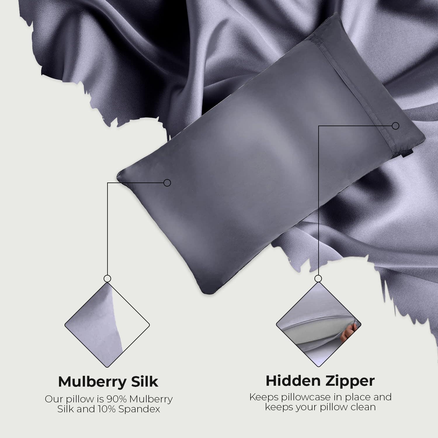 1. MÁS DURADERA QUE LA SEDA SIMPLE: Nuestra funda de almohada de seda 6A Mulberry contiene un 10% de elastano. Esto resuelve las 3 quejas más comunes de las fundas de almohada de seda pura 100%: durabilidad, ajuste y lavabilidad. A diferencia de la competencia, el elastano garantiza que nuestras fundas de almohada de seda siempre se sientan como nuevas incluso después de años de uso y lavado, todo manteniendo esa sensación súper lujosa de la seda. 2. AJUSTE MEJOR Y MÁS SEGURO QUE LA SEDA SIMPLE: El 10% de elastano asegura que nuestras fundas de almohada de seda se estiren perfectamente a la forma de tu almohada y tu cabeza, sin crear tensión en la tela. La solapa europea y el cierre oculto de esta funda de almohada de seda Morera realzan el atractivo estético de tu ropa de cama y mantienen tu almohada firmemente cerrada. 3. TODOS LOS BENEFICIOS DE BELLEZA DE LA SEDA PURA: Anti-envejecimiento, anti-arrugas y anti-encrespamiento. Elimina la fricción del cabello para reducir la rotura. Reduce la irritación de la piel. Minimiza las arrugas del sueño e hidrata la piel. 4. CALIDAD DEL SUEÑO MEJORADA: Nuestras fundas de almohada King y Queen son tu clave para un mejor sueño. Las propiedades de regulación natural de la temperatura de la seda reducen los sudores nocturnos, permitiéndote disfrutar de un sueño ininterrumpido y reparador, noche tras noche. 5. DISEÑO DE LUJO CON BIES DECORATIVO: Nuestra funda de almohada de seda presume de un diseño elegante con bies decorativo meticulosamente cosido. Son una combinación perfecta de comodidad y elegancia reconocidas por su sensación y calidad lujosas.