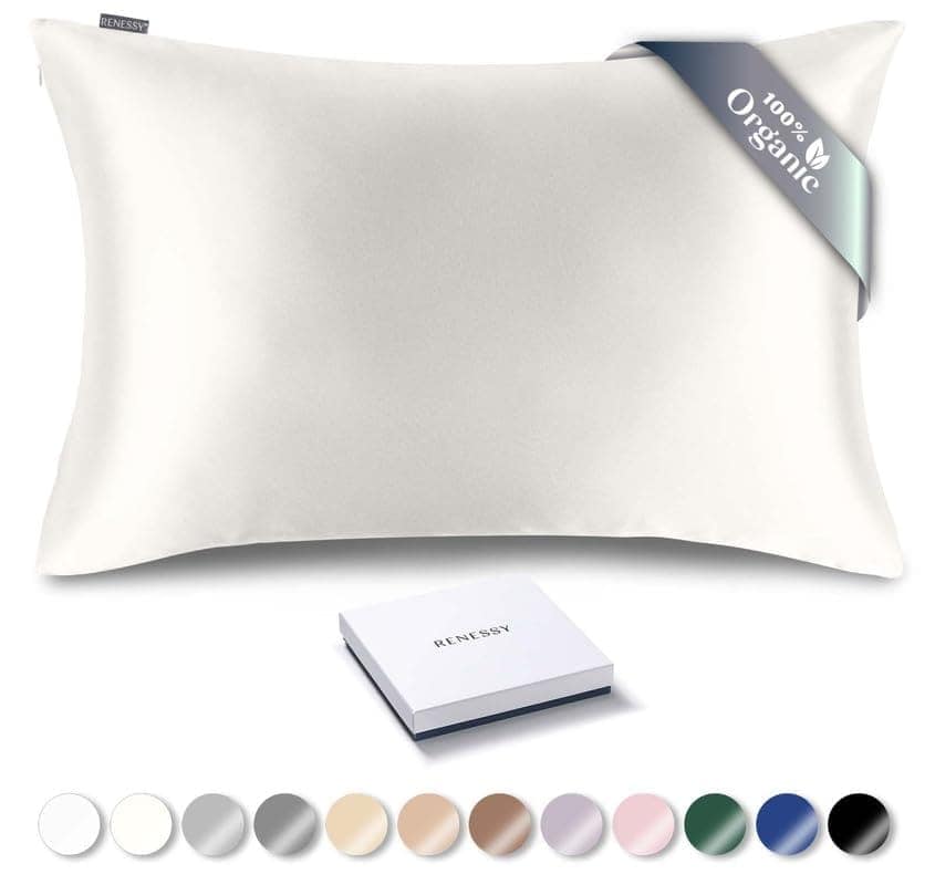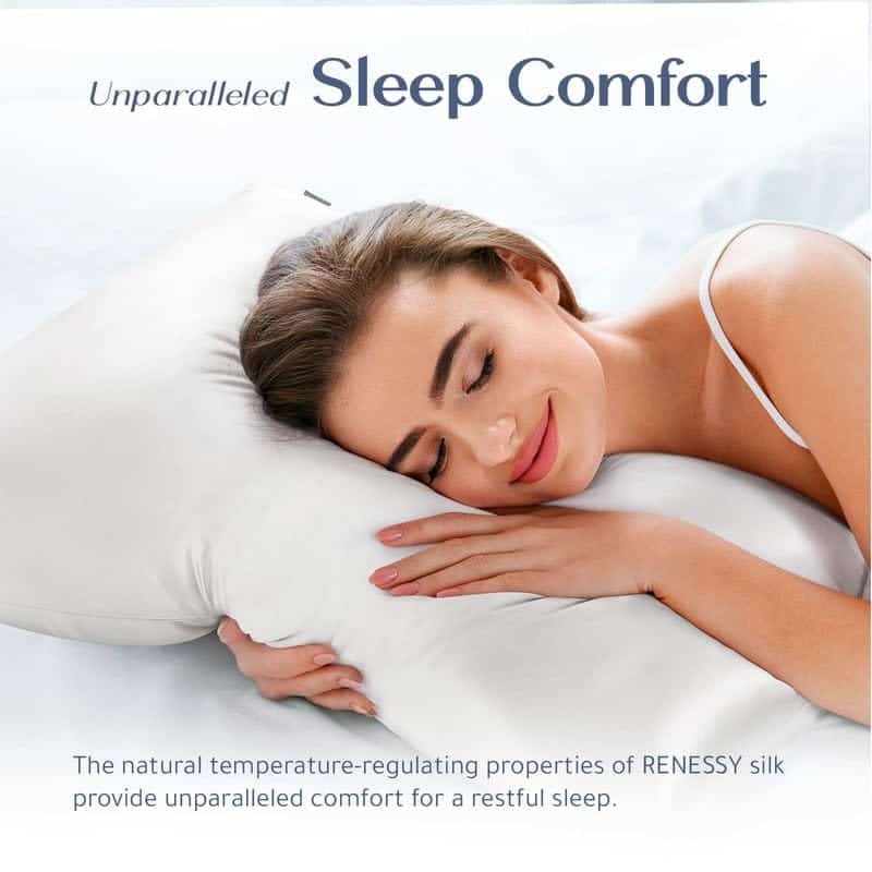 1. LUJO DE SEDA ORGÁNICA – Experimenta el lujo incomparable de la seda orgánica. Las fundas de almohada de RENESSY, elaboradas con 100% seda orgánica de morera en un tejido Charmeuse, brindan una comodidad excepcional, transformando tu experiencia de sueño en una felicidad nocturna.