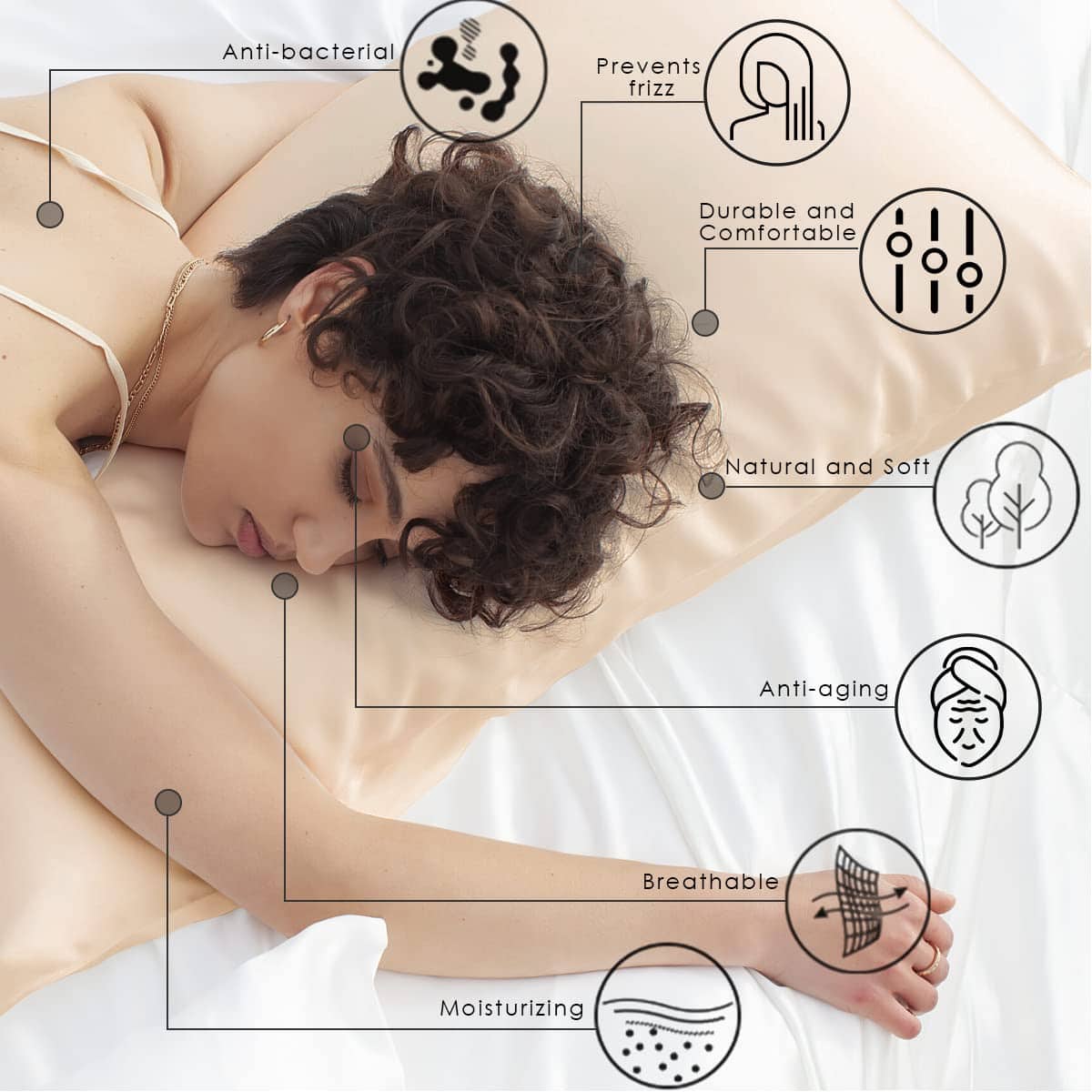 4. UN REFUGIO FRESCO PARA LOS SOFOCOS: La seda es un material ligero y transpirable que regula el calor de forma natural, lo que significa que dormir en una cubierta de almohada o ropa de cama de seda no solo es cómodo, sino también más fresco. Su capacidad para mantener una temperatura fresca y constante durante toda la noche puede ayudar a reducir el exceso de sudoración y, por lo tanto, ralentizar los sofocos no deseados.