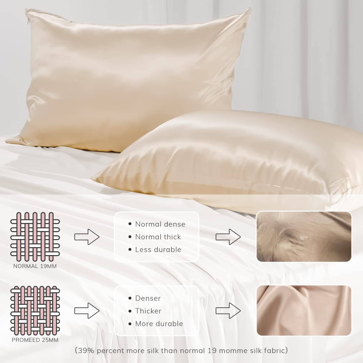 5. FÁCIL CUIDADO: Lavable a máquina en ciclo suave. La ropa de cama de seda de 3ra Generación de Promeed es más duradera que los productos de seda o satén comunes y permanece suave al tacto después de muchos lavados.