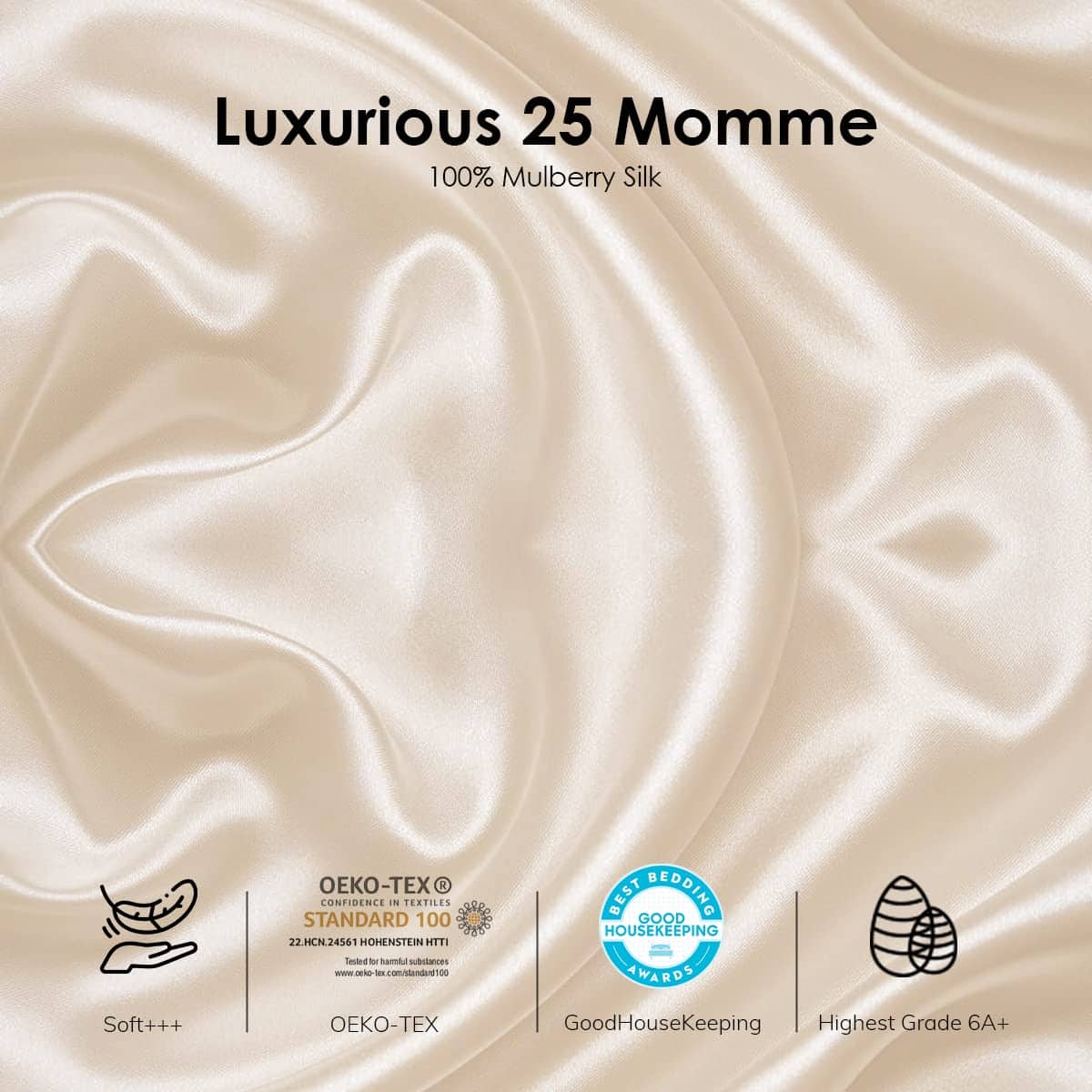 1. CERTIFICADO ESTÁNDAR 100 DE OEKO-TEX: La funda de almohada de seda de 25 mommes de Promeed está hecha con la más alta calidad de seda de morera orgánica de Grado 6A+, que es súper suave, fresca y no absorbente, lo que la hace ultra transpirable, previniendo brotes y reduciendo las arrugas durante el sueño. Nuestra funda de almohada de seda orgánica contiene poderosos aminoácidos que la hacen ideal para pieles sensibles.