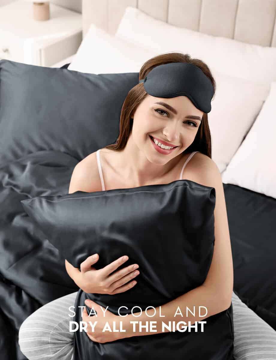 4. Siéntete Fresca en la Hora de Dormir. Las propiedades naturales de regulación de temperatura de la seda natural la hacen sentir fresca en verano y cálida en invierno. Crea la máxima comodidad para dormir mientras la seda acaricia suavemente tu piel tierna. Olvídate de las noches inquietas y sudorosas y da la bienvenida a la frescura blissful de nuestras fundas de almohada de seda. Duerme pacíficamente por la noche y despierta sintiéndote refrescada.