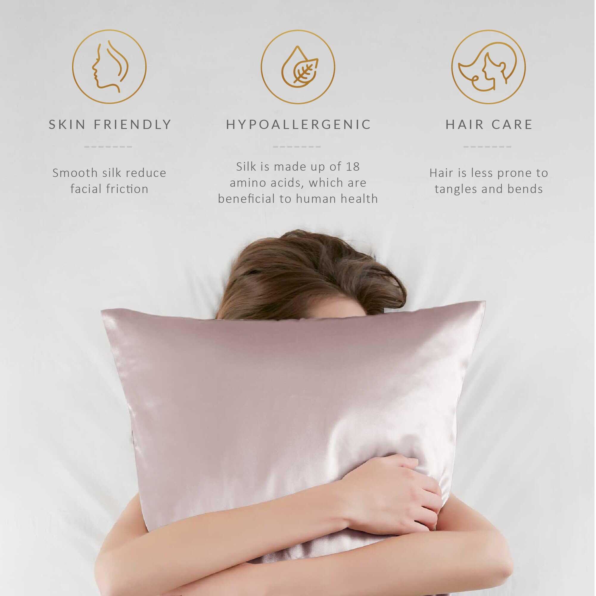 Ambos lados de Seda de Morera Grado (6a), 25mm 100% Seda de Morera Pura, Brindándote la mejor experiencia de seda. En comparación con algunas fundas de almohada de seda de 19 y 22 Momme, mientras que 25 Momme es de gama alta, mayor densidad de la seda significa durabilidad adicional, lo que brinda una experiencia más lujosa. Nuestro 25mm es más denso. Tiene más contenido de seda, las fibras de seda son más largas y uniformes, por lo que el tejido es más suave y resistente, aguantará más lavados. La seda es el tejido preferido por aquellos que se preocupan por su piel. La seda natural pura es mejor que el satén y otros tejidos, se ajustan mejor a tu piel. Fundas de almohada de seda saludables e hipoalergénicas que son excelentes para tu cabello, piel y cuerpo mientras duermes. Resulta que toda esa fricción puede causar pliegues que se convierten en arrugas con el tiempo, pero las fundas de almohada de seda crean una superficie suave para que tu piel se deslice… ¿Cansado de despertarte por la mañana con el cabello desordenado? La funda de almohada de seda pura de 25 momme es el controlador de daños y rescatador del encrespamiento de tu cabello. La suave seda permite que tu cabello se deslice suavemente por tu almohada mientras duermes, reduciendo las puntas abiertas y la rotura del cabello. Puede reducir la fricción en un 43% en promedio. Mantiene el cabello suave mientras te volteas y giras durante la noche. La funda de almohada de seda de morera te mantiene fresco en verano y cálido en invierno. La seda es un tejido transpirable, tiende a ser un buen regulador de calor. Sea cual sea la estación, puedes mantener una temperatura adecuada para dormir. Esta funda de almohada de seda es definitivamente la más práctica para tus amigos de cabello rizado y aquellos que desean un sueño cómodo. Cremallera oculta para tu comodidad al limpiar. El lavado a mano es el mejor método. Lava a mano en agua fría con un detergente suave (como Woolite), no dejar en remojo. Luego cuelga para que se seque completamente. Colores lisos superiores y duraderos, no se decoloran fácilmente después del lavado. Si tienes alguna pregunta, también puedes contactarnos, te brindaremos el mejor servicio.