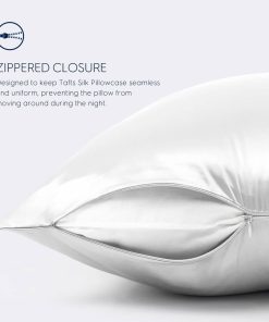 4. REGULADOR DE TEMPERATURA + CIERRE DE CREMALLERA – La seda de morera 100% pura de Taft es un regulador térmico natural y ayuda a mantener la temperatura corporal toda la noche. La seda es capaz de capturar el aire entre los hilos de seda, lo que te mantiene fresco en verano y cálido en invierno. El diseño de cierre de cremallera oculto mantiene la funda de almohada uniforme y sin costuras, evita que la almohada se mueva durante la noche y facilita meter y sacar la almohada para lavarla sin frustraciones.