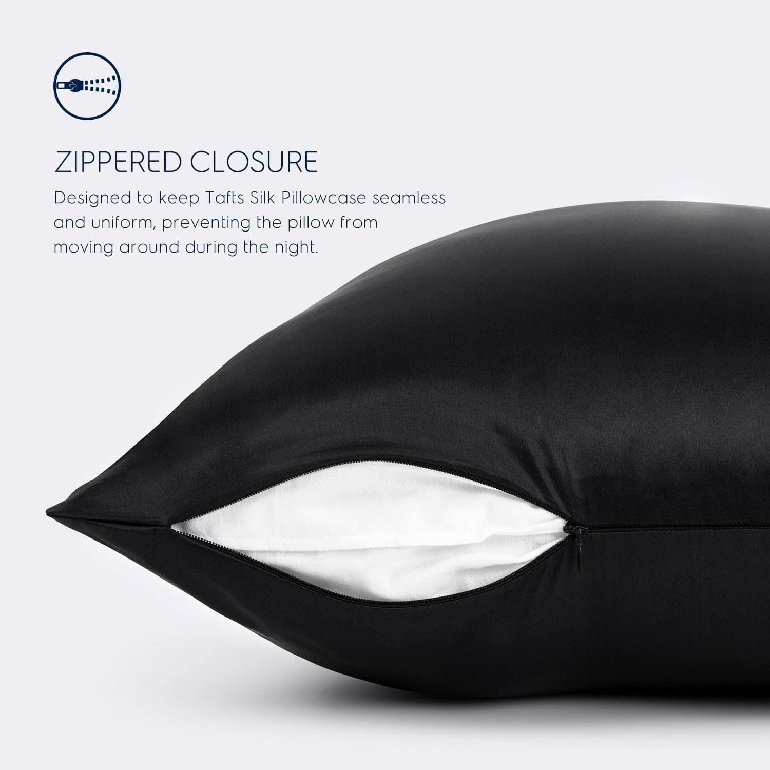 Disfruta de una noche de descanso con la funda de almohada de seda Tafts. Hecha de 100% pura seda de morera 6A, esta funda de almohada es suave para la piel y el cabello. Con un cierre de cremallera para mayor comodidad y una sensación fresca y natural, esta funda de almohada de seda de doble cara en negro medianoche es perfecta para tu cama King size. ¡Cuida de tu piel y cabello mientras duermes con esta funda de almohada de seda de lujo!