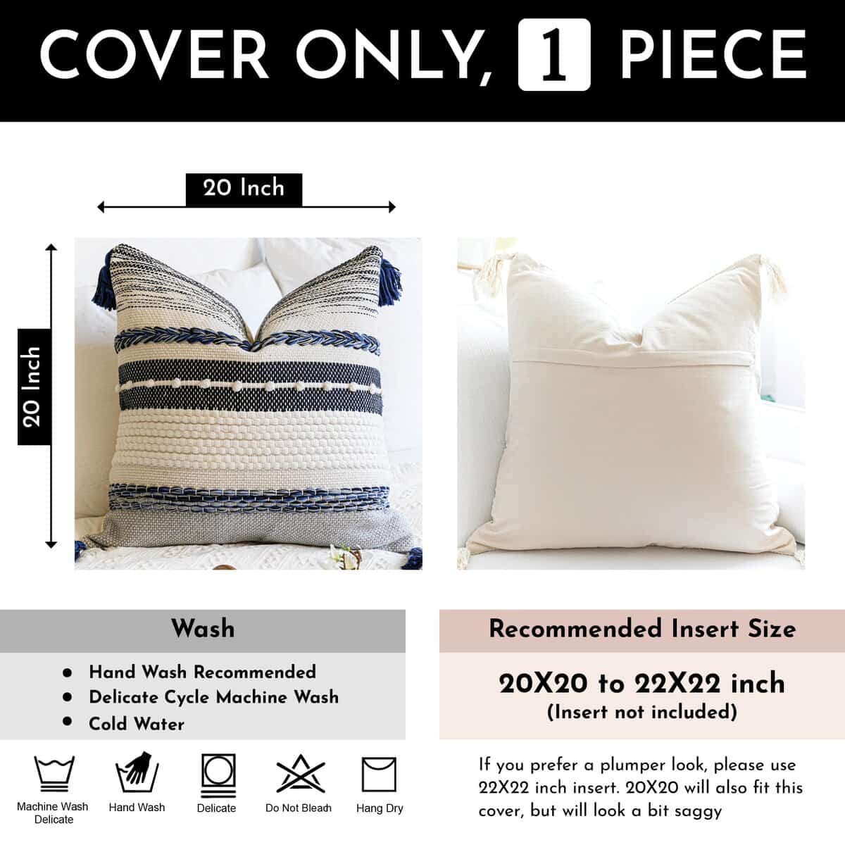 BLISSBLUSH Funda de Almohada Decorativa Azul Marino Oscuro 20×20 Cuadrada con Borlas Boho Cojín de Acento para Sofá Cama Cuarto Sala de Estar Decoración del Hogar SOLO la Funda es la opción perfecta para agregar un toque de estilo bohemio y elegante a tu hogar. Esta funda de almohada artesanal es una verdadera obra de arte hecha con amor y cuidado. Ya sea que desees darle un toque decorativo a tu sala de estar, dormitorio, o cualquier otro espacio, esta funda de almohada es la elección ideal. Hecha con los mejores materiales y diseñada para durar, la funda de almohada BlissBlush es garantía de calidad y estilo. Hazte ya con la tuya y transforma tu espacio en un oasis de belleza y confort.