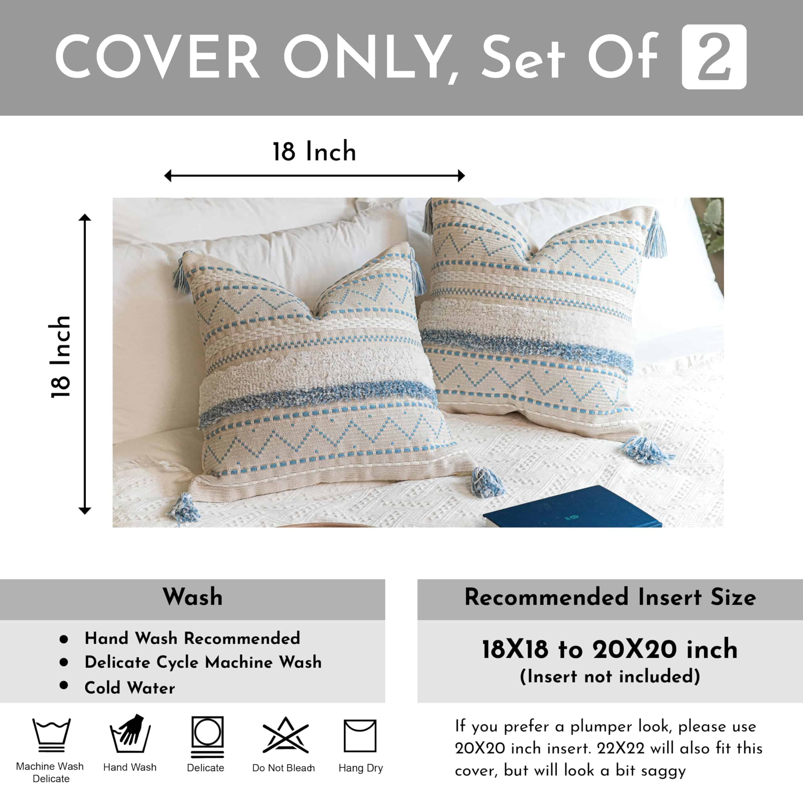 BLISSBLUSH Funda de Almohada Decorativa Costera Azul 18X18 Conjunto de 2 Cuadrados Funda de Almohada Bohemia con Borlas Almohada de Acento de Granja para Sofá Cama Habitación Sala de Estar Decoración del Hogar ¡COBERTURA SOLAMENTE!