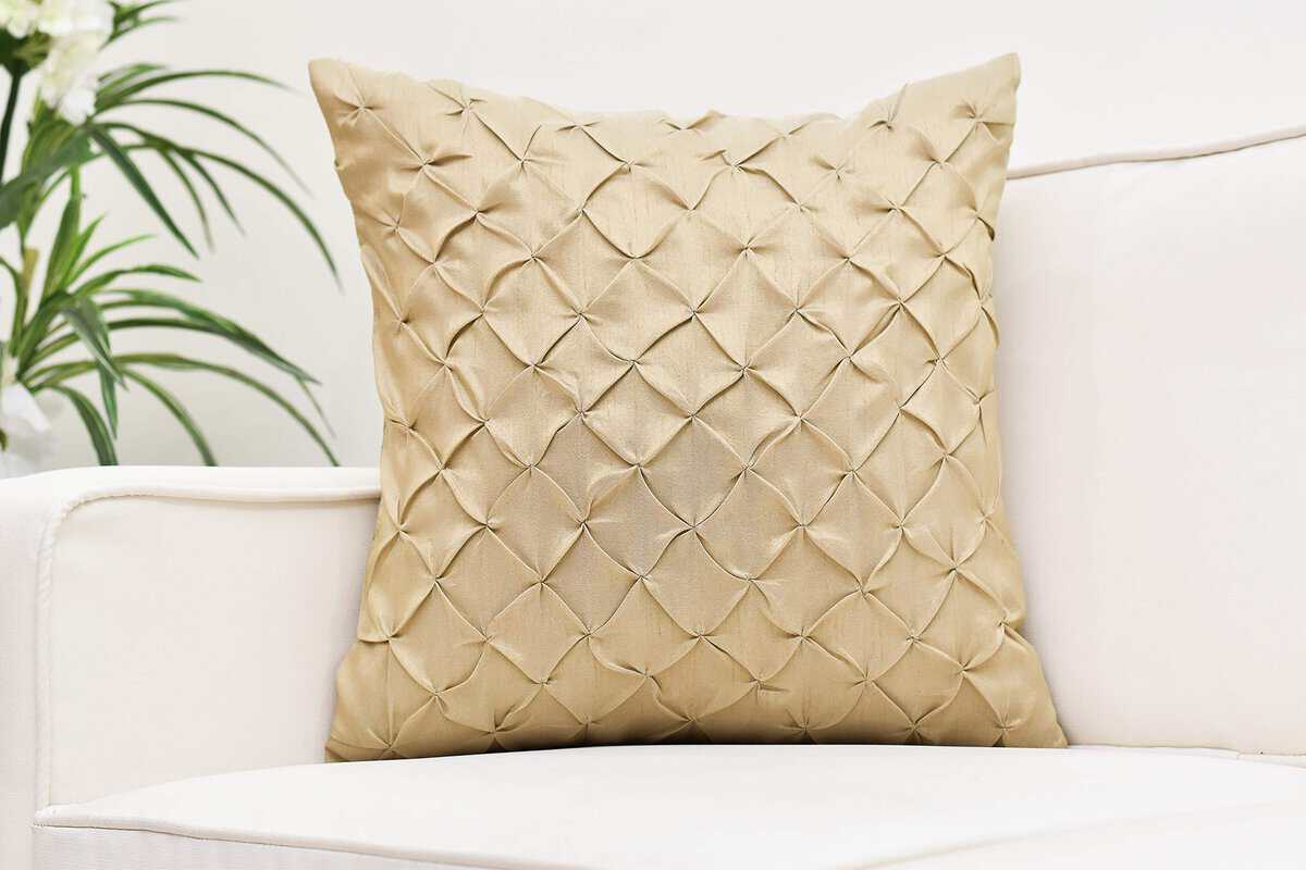 Funda de Almohada Euro Dorada (Seda Falsa, Pliegue al