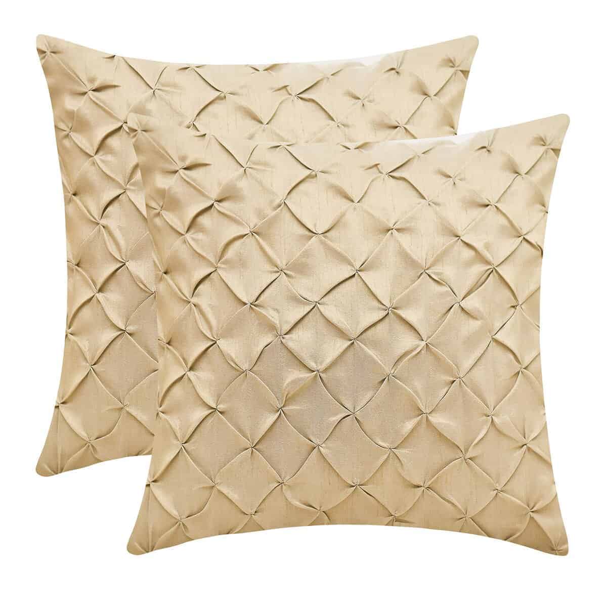 1. INCLUSIÓN- 2 fundas de almohada doradas de tamaño 66×66 pulgadas (66×66 cm). El RELLENO no está INCLUIDO para que puedas usar rellenos de tu elección.