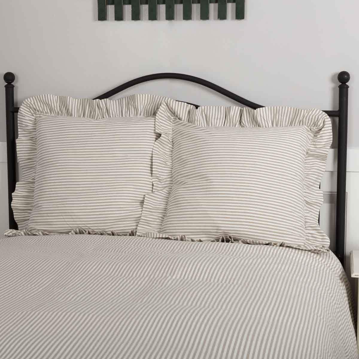 Funda de Almohada Euro en Tela Ticking de Granja Color Taupe
