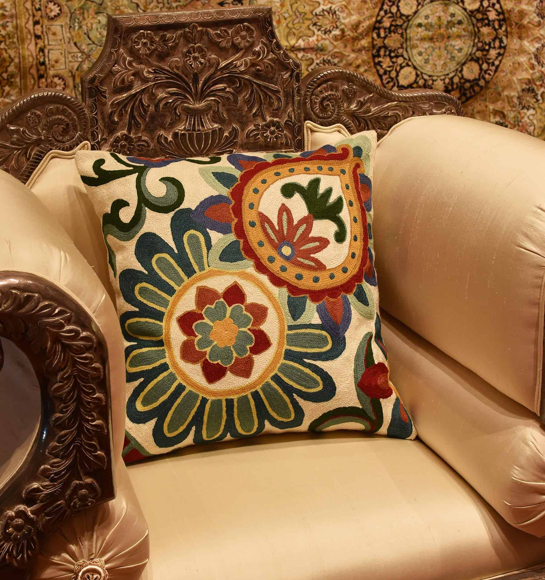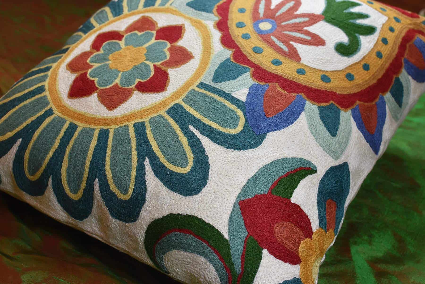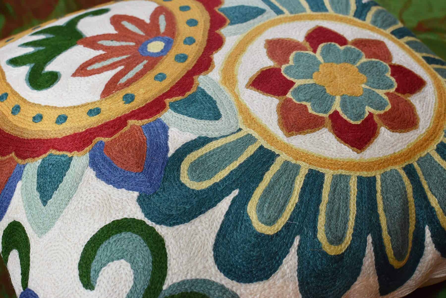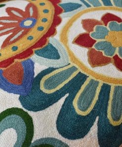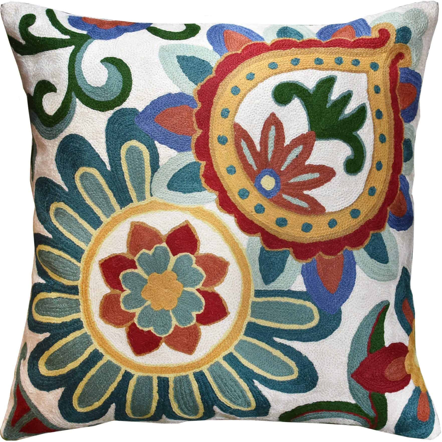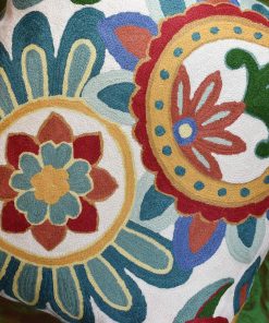 Estas coloridas fundas de cojín floral están inspiradas en diseños de arte floral moderno contemporáneo y están bordadas a mano en lana suave por los mejores artesanos, creando un extraordinario diseño de flores modernas para la decoración de tu hogar. Una vista de cerca de este cojín floral moderno te permite ver el increíble bordado de cadeneta que cubre toda la parte delantera de esta funda de almohada floral. Este cojín de acento floral suzani art nouveau, con sus fabulosas puntadas de cadeneta, animará un hogar u oficina de estilo transicional o moderno. Esta funda de cojín floral exterior moderno dará vida a un viejo cojín o adornará un nuevo relleno de almohada como un cojín de granja único. Desde el patio hasta la sala de estar, desde la sala de estar hasta el dormitorio, desde el estudio hasta la habitación de los niños, estos fabulosos cojines de arte floral harán lucir tu decoración en cualquier lugar. Nuestros suaves cojines decorativos de diseño floral están hechos con materiales naturales de primera calidad. Parte delantera: bordado a mano con lana suave, Reverso: lienzo de algodón 100%. Esta funda de cojín de acento floral bordada con agujas se puede utilizar como un cojín tradicional de mediados de siglo o como una funda de cojín de acento de granja. Nuestras fundas de cojín floral son verdaderamente bordadas a mano, transpirables, suaves y fáciles de cuidar. Harían un excepcional cojín de flores. Elije estas refrescantes fundas de cojín floral modernas para complementar o darle vida a tu hogar. Estarás seguro de recibir muchos elogios de tus familiares y amigos. Estas fundas de cojín floral exterior bordadas a mano serán una adición perfecta para decorar tu sofá, cama, silla, sala de estar, dormitorio, etc. Suaves al tacto, nítidamente brillantes y atrevidos a la vista, estos cojines decorativos florales modernos pueden combinarse con prácticamente cualquier tipo de muebles del hogar.