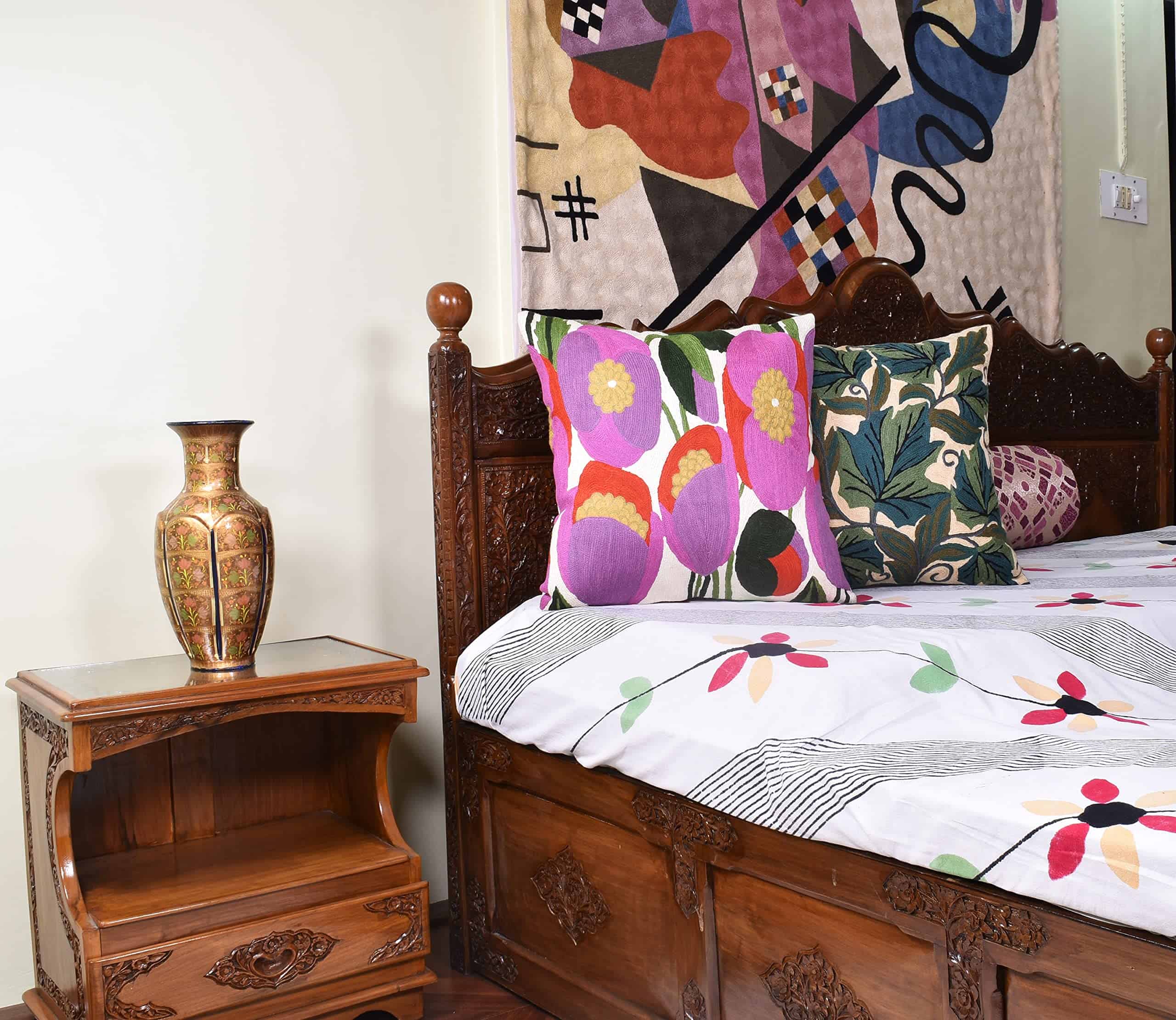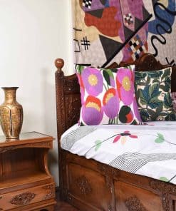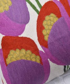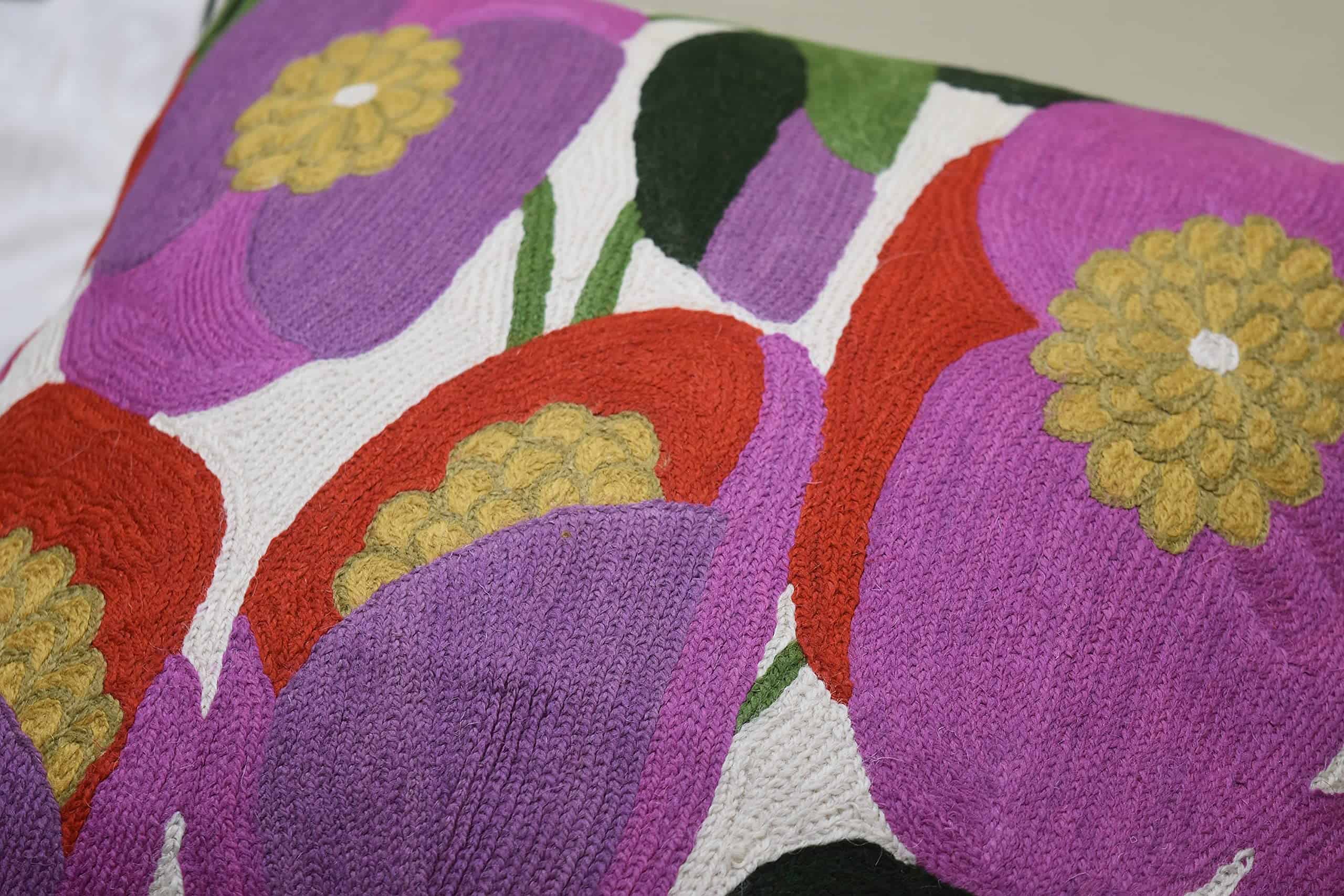 Este colorido cojín de flor bordado a mano está inspirado en diseños de arte floral suzani contemporáneo y es perfecto para añadir un toque único a tu hogar u oficina. Hecho con materiales naturales de alta calidad como lana suave y lienzo de algodón, este cojín de acento floral único es transpirable, suave y fácil de cuidar. Ideal para decorar tu sofá, cama o silla y recibir muchos halagos de tus familiares y amigos.