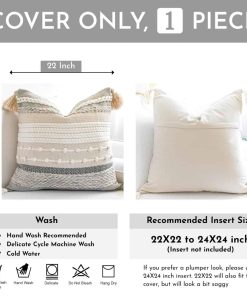 BLISSBLUSH Funda de Almohada Gris Boho 22×22, Almohada Decorativa Gris para Sofá, Funda de Cojín Cuadrado Tejida Texturizada, Almohada Moderna para Cama, Funda de Almohada Bohemia (Paquete de 1)