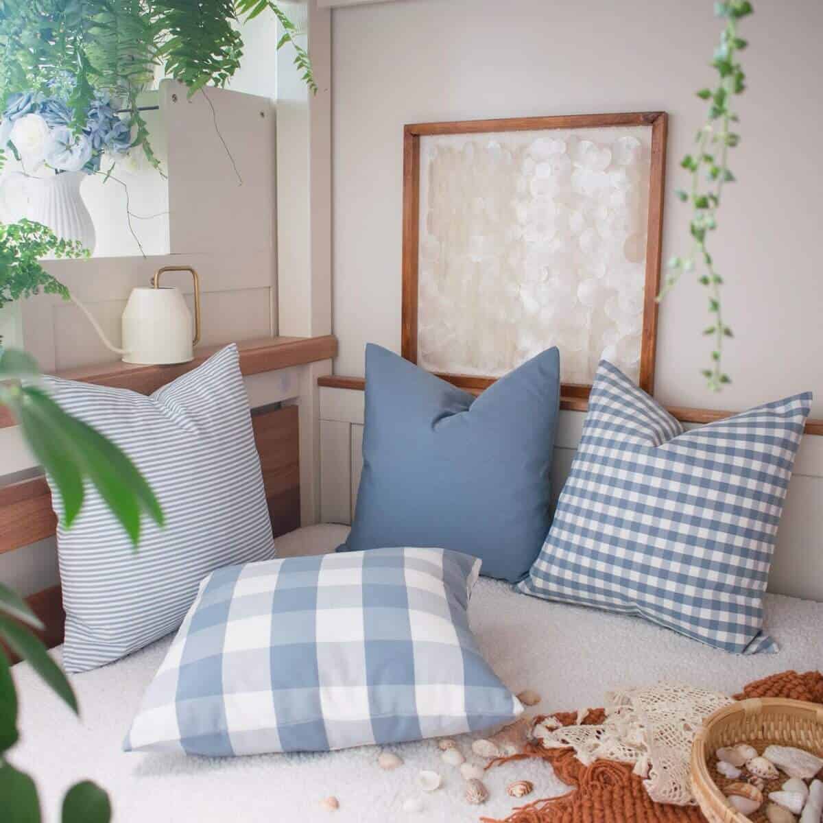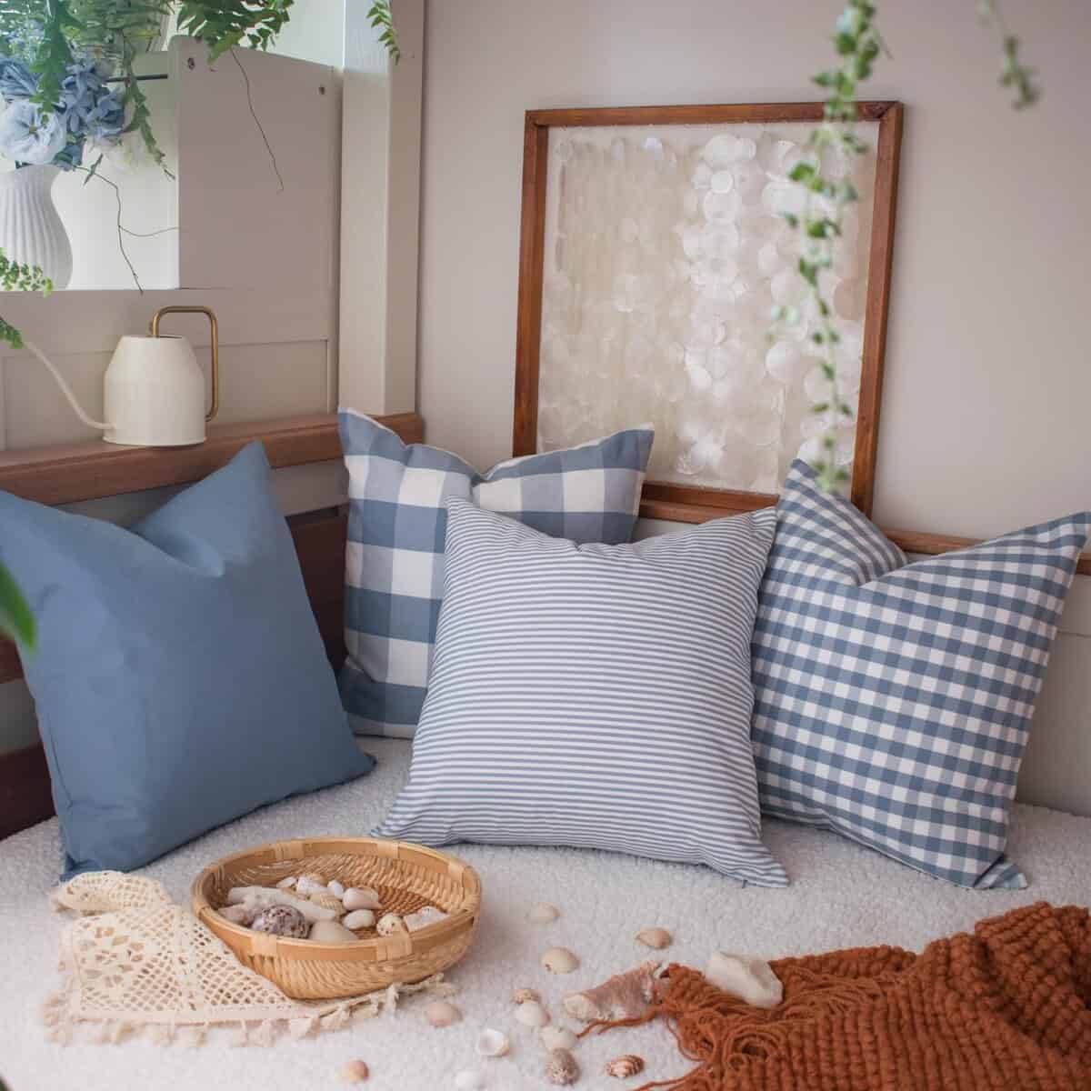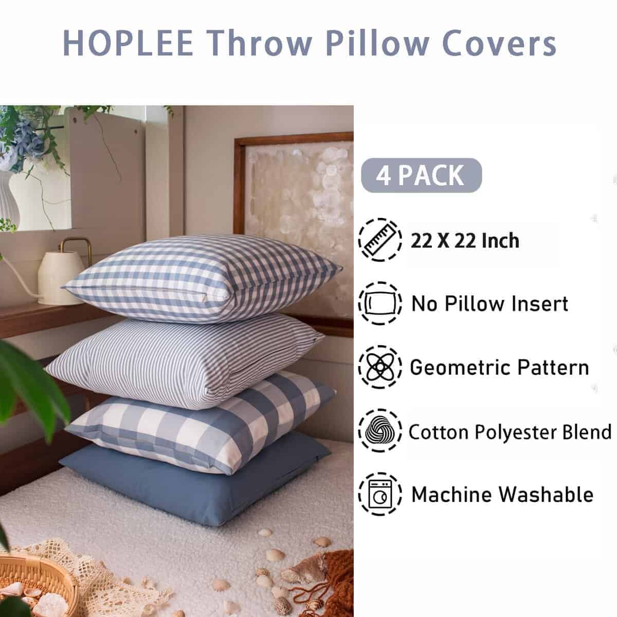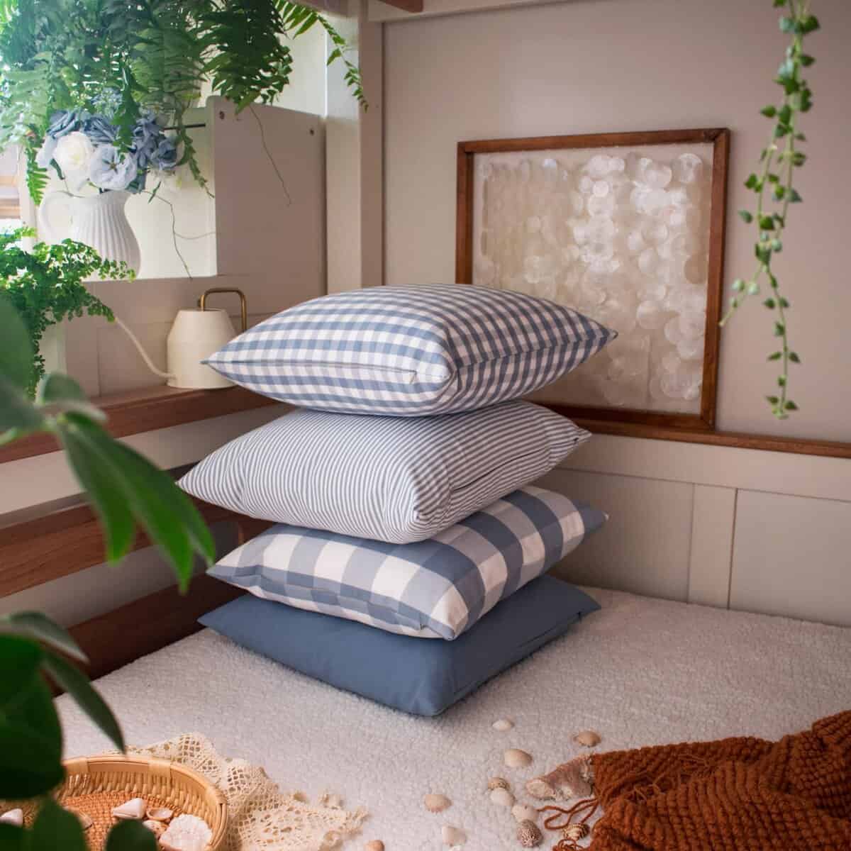 Funda de Almohada HOPLEE Azul Claro con Diseño de Cuadros