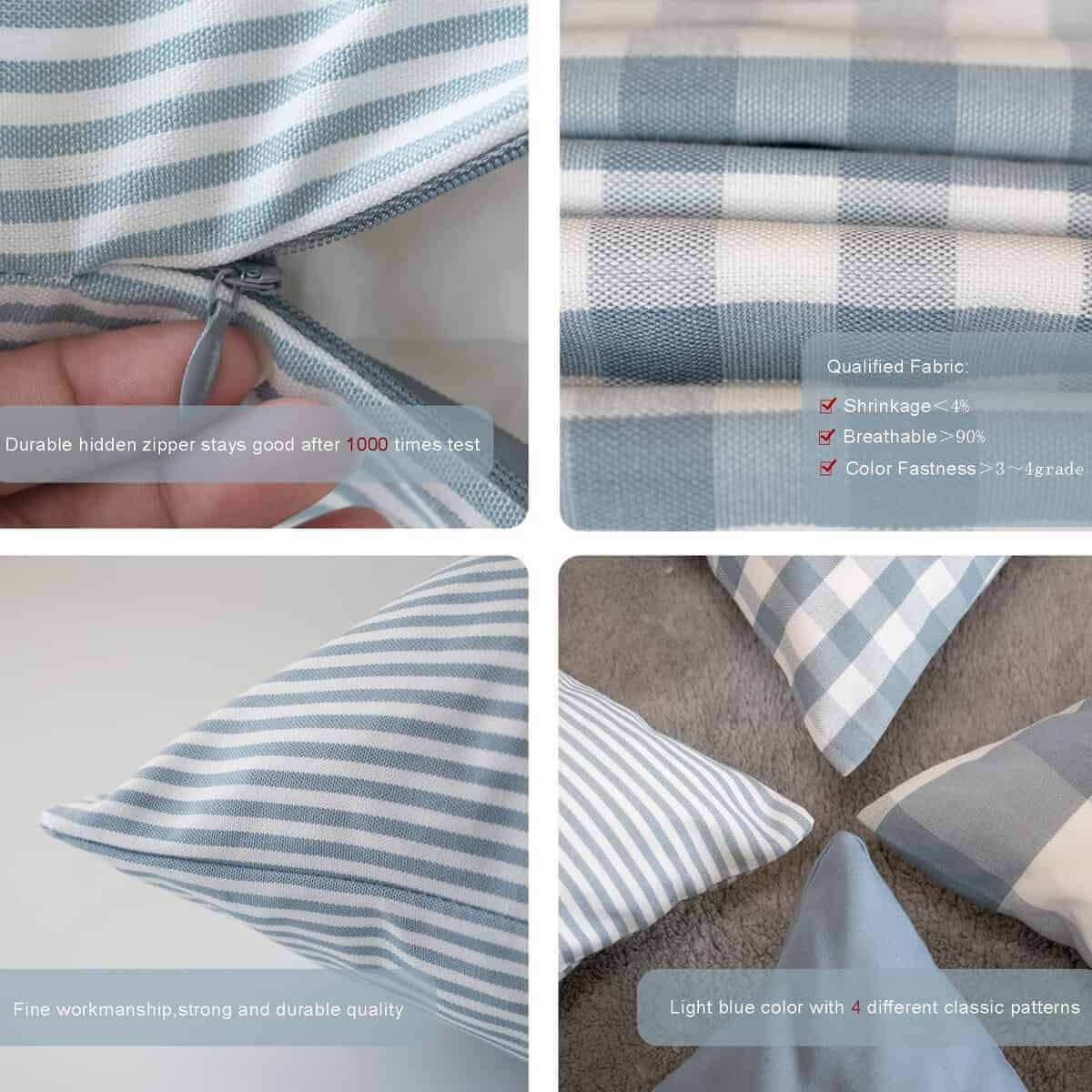 Las fundas de almohada azul claro están emparejadas con cremallera invisible. Desmonta libremente, conveniente para cambiar. Te ayudarán a decorar tu hogar de manera más hermosa con estas fundas de almohadas de estilo rural. El estilo de estas fundas de almohada decorativas se adapta a muchas ocasiones como el sofá/couch de casa, sala de estar, dormitorio y asiento de ventana. O para la cafetería y el auto, etc. Serán los mejores regalos de vacaciones o decoraciones para el hogar para familiares y amigos, esta es la manera perfecta de crear recuerdos duraderos y llenos de amor. DISEÑO – Patrón sencillo, color azul y blanco, da un estilo rural a tu casa. Estas fundas de almohada decorativas lucirán hermosas en tu sofá, sofá o silla. ¡Verás que las fundas de almohada son exactamente lo que estabas buscando!