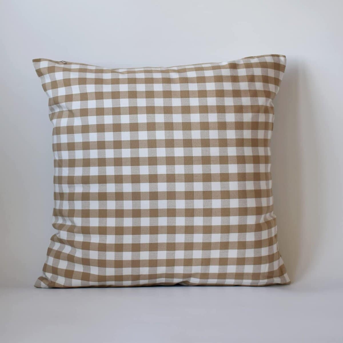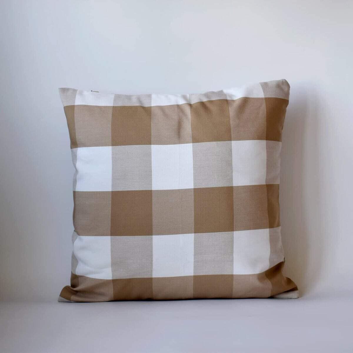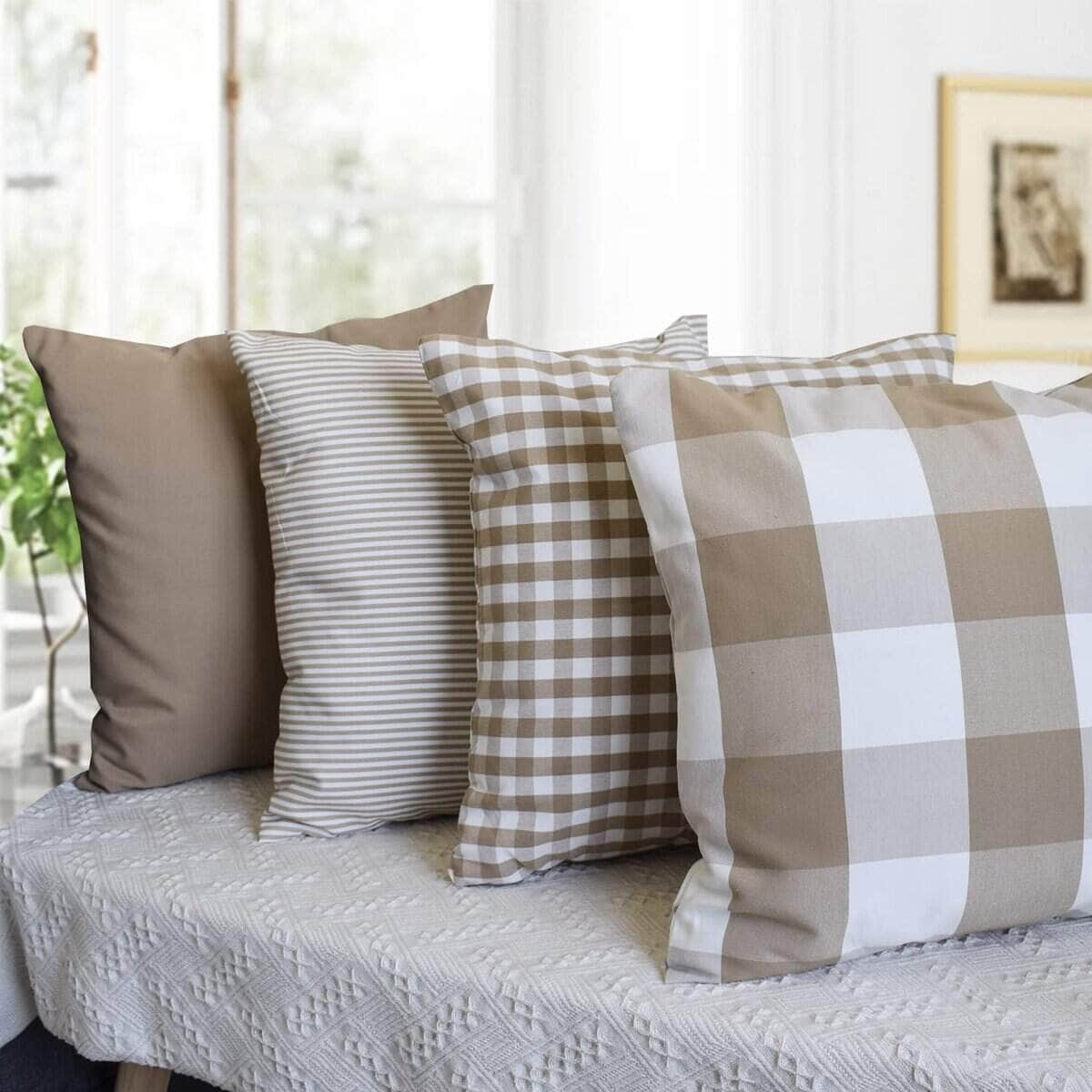 Funda de almohada de 22×22 pulgadas con diseño de Buffalo Plaid, Beige Sólido, a Rayas y de Cuadros en color beige y blanco. Cuenta con cierre invisible que permite desmontarla fácilmente. Adecuada para decorar tu hogar en diferentes ocasiones como tu sofá, sala de estar, dormitorio, ventana o para regalar a familiares y amigos. Dale un toque de estilo granjero a tu casa con estas hermosas fundas de almohada.