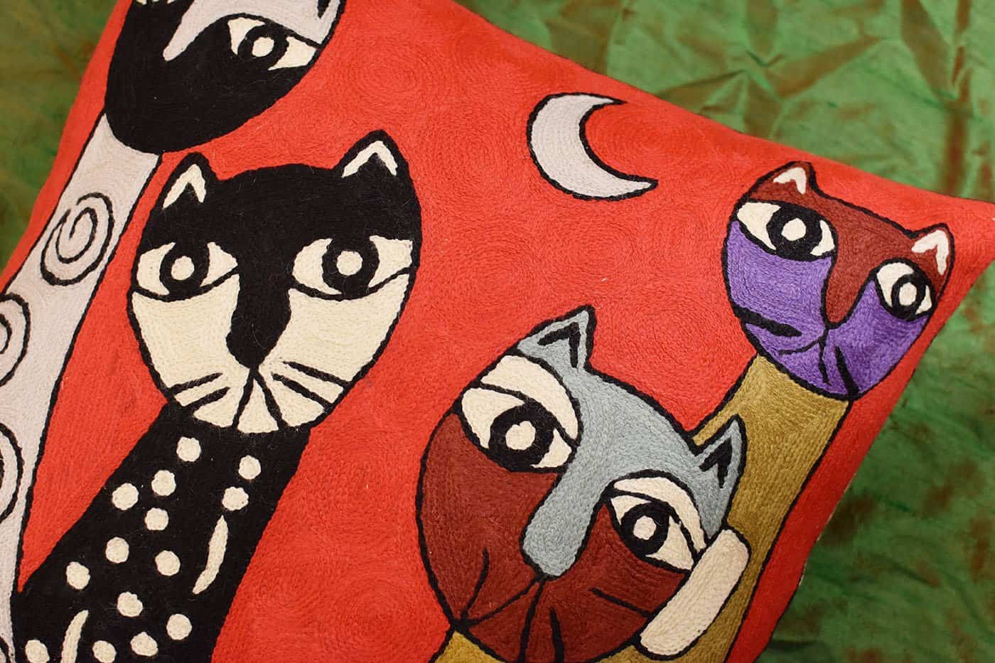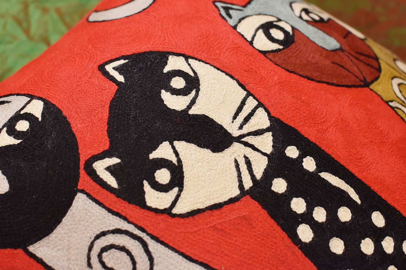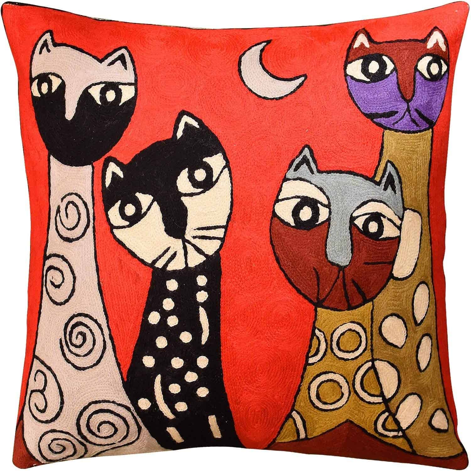 CALIDAD PREMIUM – BORDADO TOTALMENTE A MANO GENUINO: Nuestras almohadas de cara de gato de alta calidad están hechas de materiales naturales orgánicos premium. Frente bordado a mano: 100% Lana suave, Reverso: Lona de algodón 100%. Esta funda de almohada decorativa de gato bordado a mano es una obra de arte, hecha a mano a la perfección. Nuestras fundas de almohada de gato únicas están verdaderamente bordadas a mano, transpirables, suaves y cómodas, y fáciles de cuidar. ELIMINE Y ILUMINE SU ESPACIO: Elija estas refrescantes fundas de almohada de gato únicas para decorar o darle un toque a su hogar. Estas fundas de almohada de gato al aire libre bordadas a mano serán una adición perfecta para decorar su sofá, sofá, cama, silla, loveseat, sala de estar, dormitorio, porche, exteriores, oficina, etc. Suaves al tacto, nítidamente brillantes y audaces a la vista, estas modernas almohadas decorativas florales se pueden utilizar con prácticamente cualquier tipo de mobiliario del hogar.