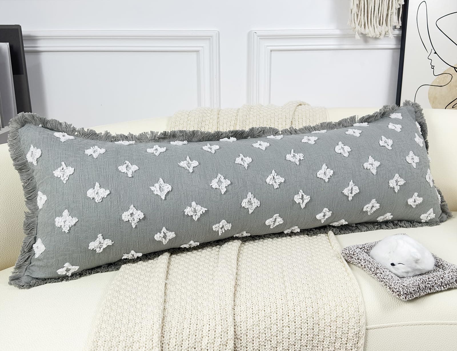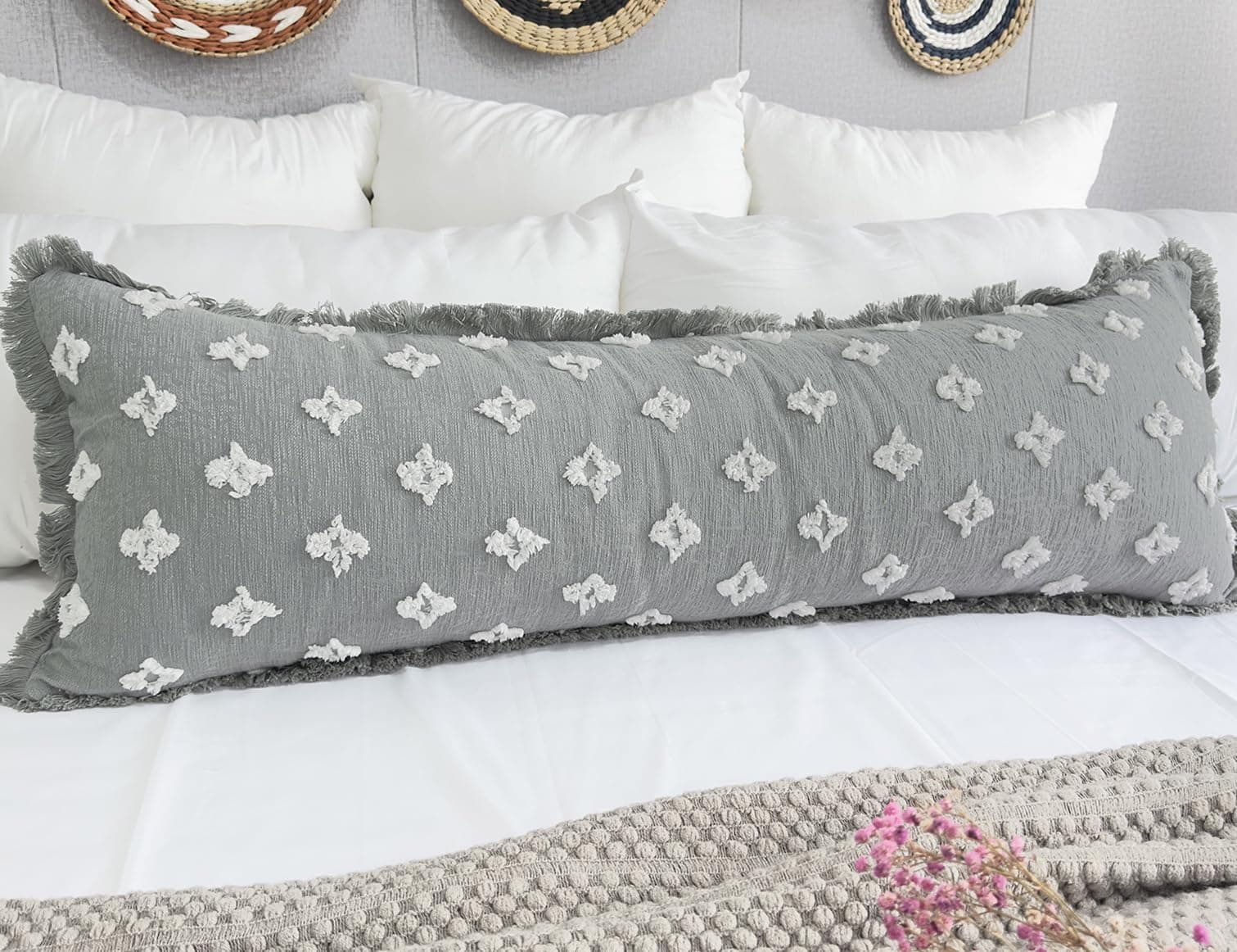 Funda de Almohada Larga Boho DRNOU 14×48 con Borlas, Estampado de Flores 3D Extra Decorativa para Sofá Cama Sala de Estar, Azul Gris. Material: Algodón, diseño de doble cara y textura de tela claramente visible, cómodo y transpirable. Diseño Elegante: Las flores en 3D te brindan una sensación natural, y las borlas hechas a mano de 1″ alrededor lucen muy lindas. Esta funda de almohada lumbar extra larga neutra también combina bien con la decoración de estilo bohemio, de granja, de mediados de siglo, retro y chic. TRABAJO ARTESANAL: Utilizamos una cremallera invisible de 44″ en el mismo color que la funda de almohada, que es elegante y fácil de quitar. Cada costura está reforzada para hacer que la funda de almohada sea más duradera. Consejos de Limpieza: Para las fundas de almohada tejidas con borlas, recomendamos lavar a mano por separado. Para prolongar la vida de las borlas, gira la funda de almohada del revés y luego lávala a mano. La primera limpieza puede tener algo de fibra flotante, lo cual es normal. NOTA: El paquete contiene 1 funda de almohada sin relleno. TAMAÑO: 35 x 120 cm. Para hacer la mejor funda de almohada de calidad, tu satisfacción al 100% es nuestra máxima búsqueda.