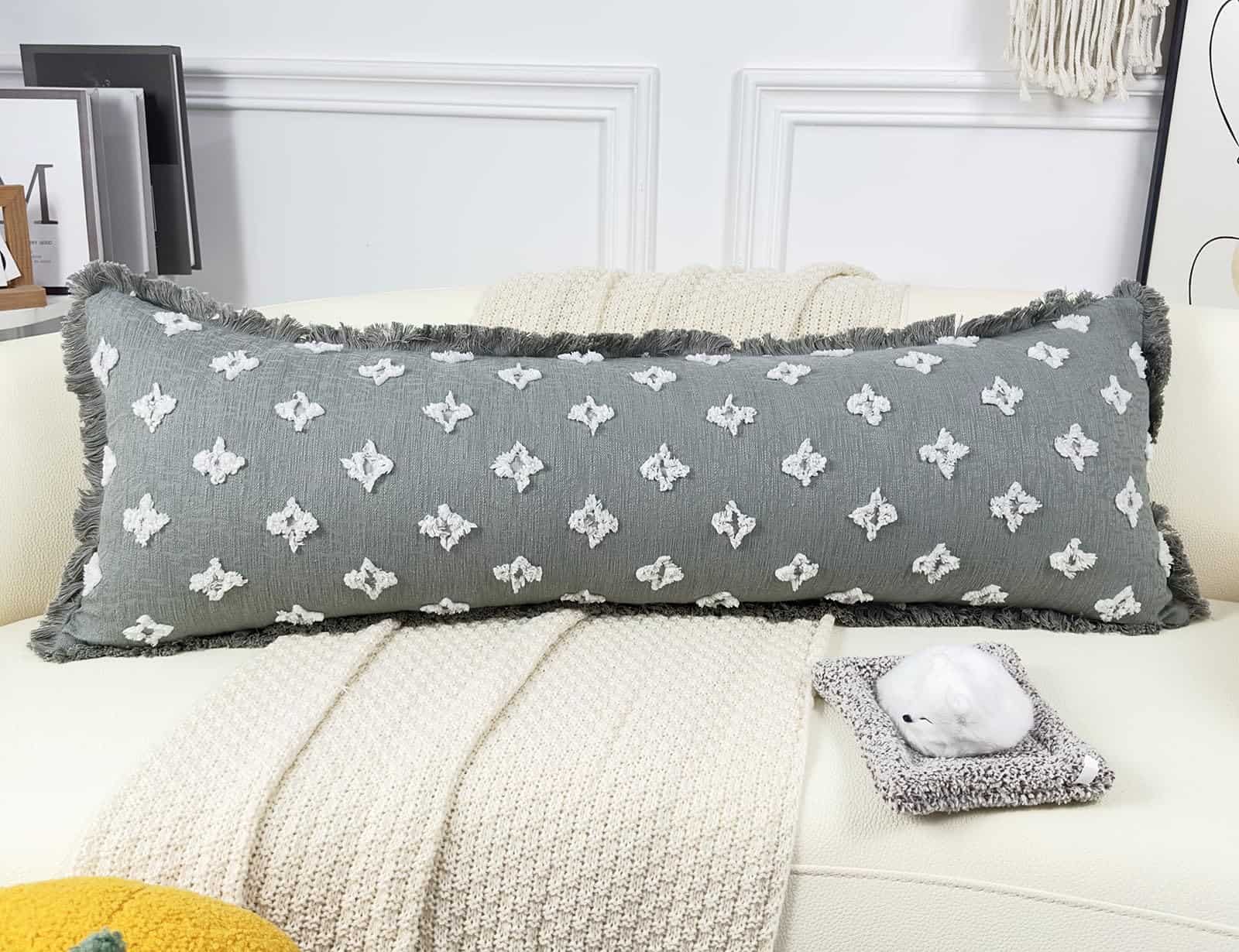 Funda de Almohada Larga Boho DRNOU 14×48 con Borlas,