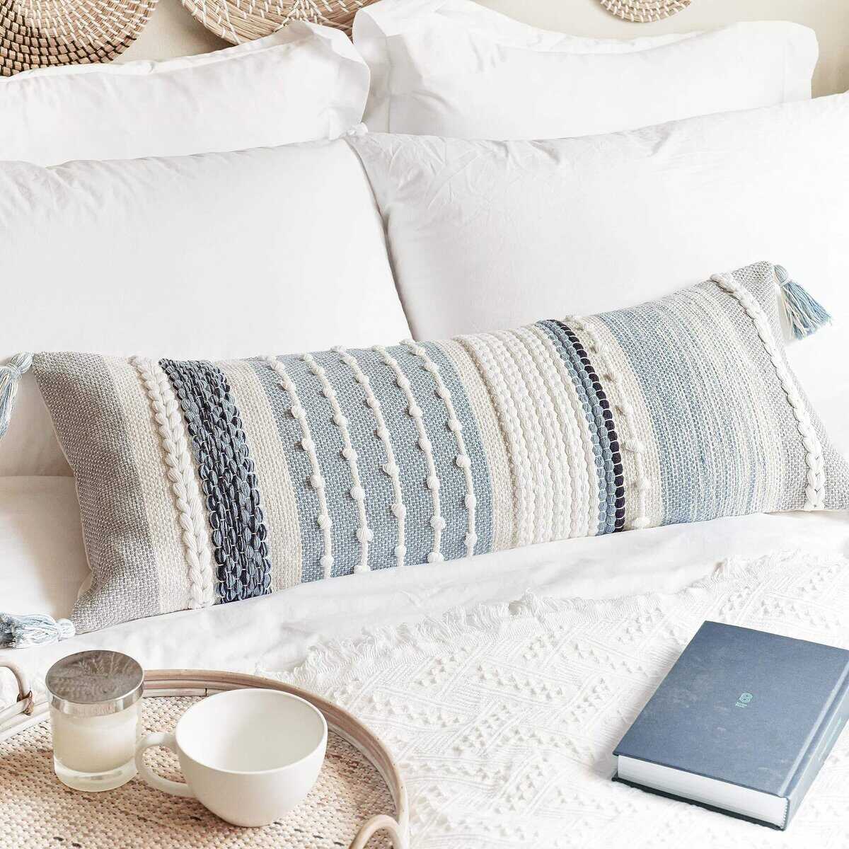Funda de Almohada Larga Decorativa BlissBlush Coastal Blue