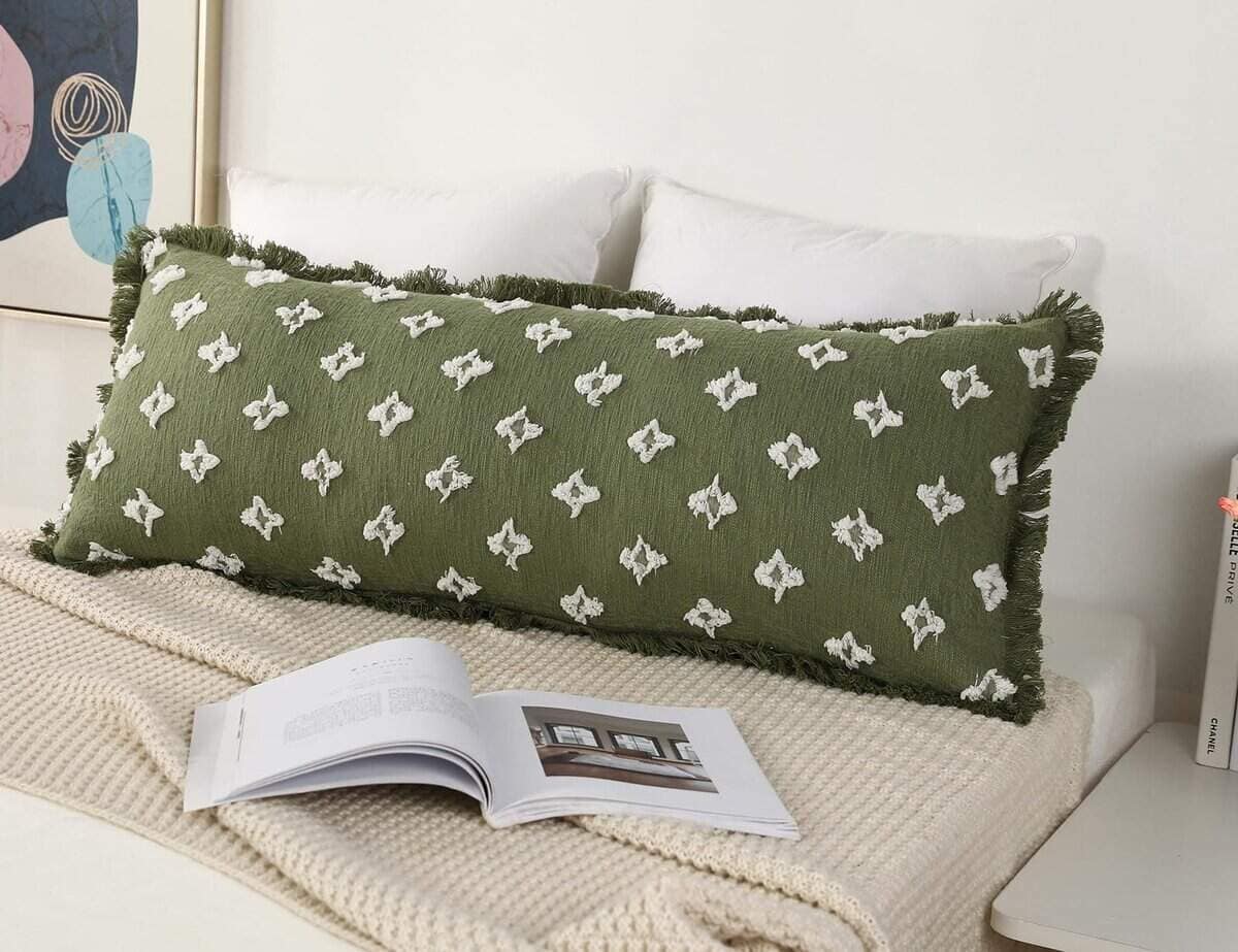 Funda de Almohada Lumbar Larga Boho 12×48 con Flecos,