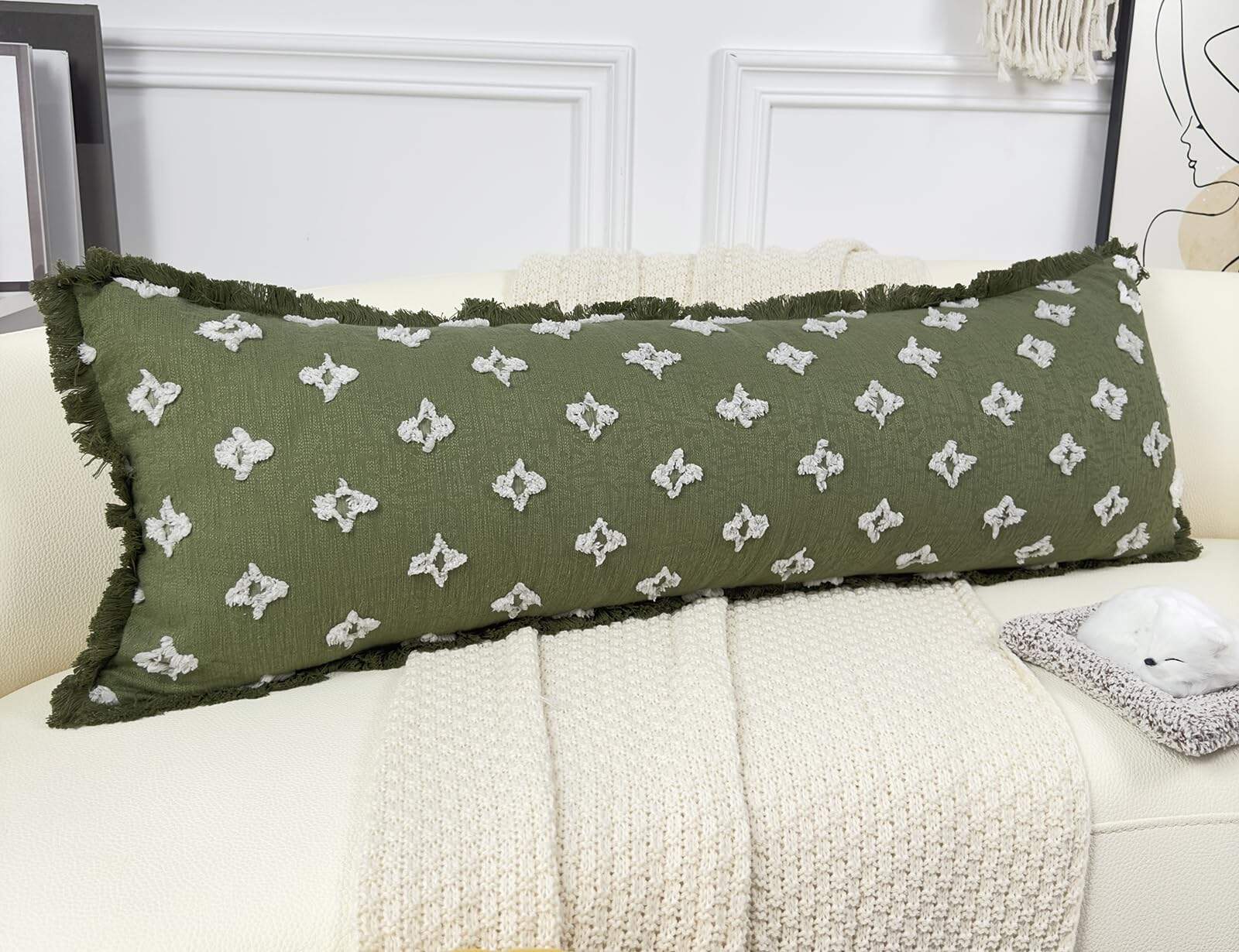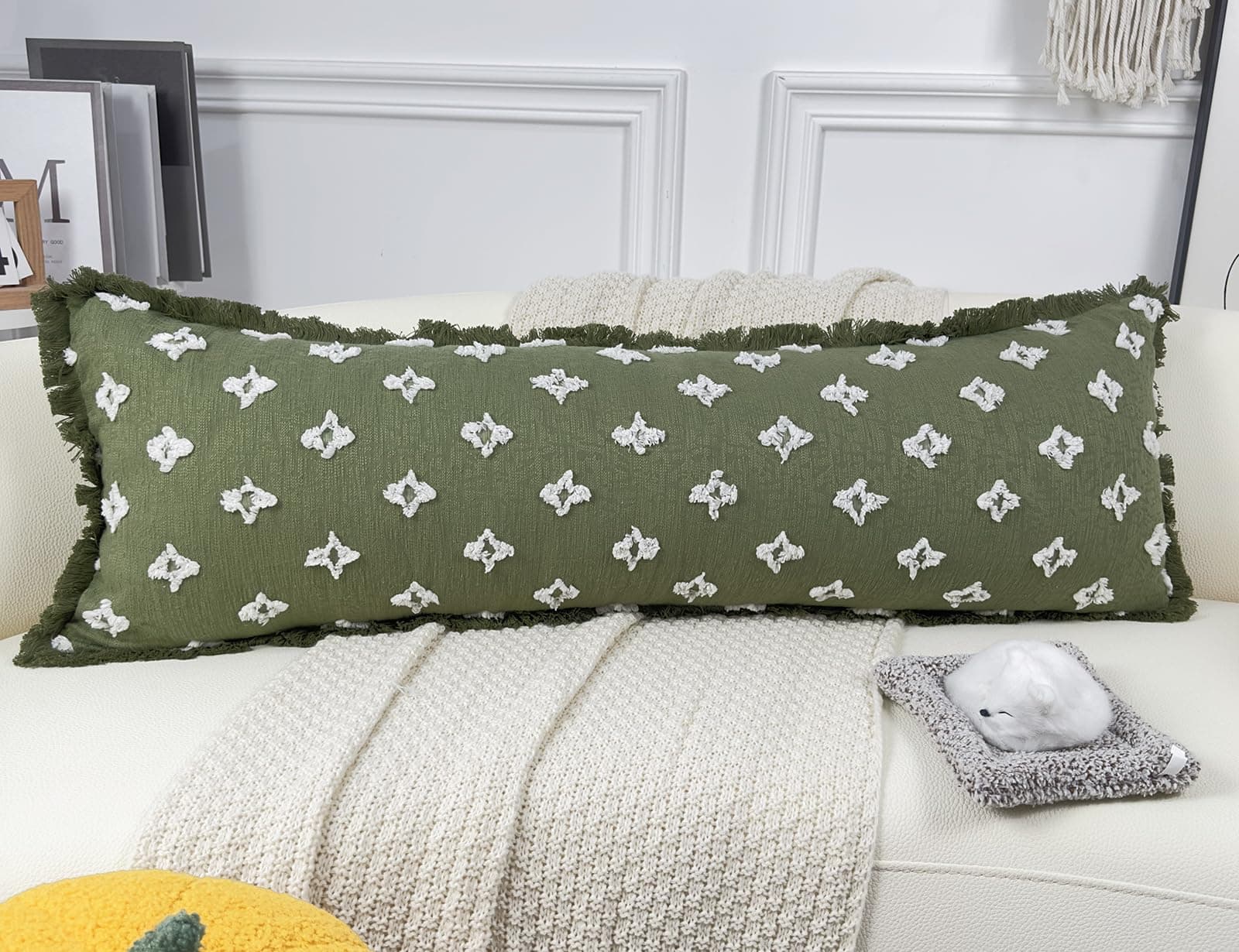 Funda de Almohada Lumbar Larga Boho 12×48 con Flecos, Patrón de Flores 3D Extra Decorativo Funda de Almohada Lumbar Larga para Sofá Cama Sala de Estar Granja, Verde Salvia