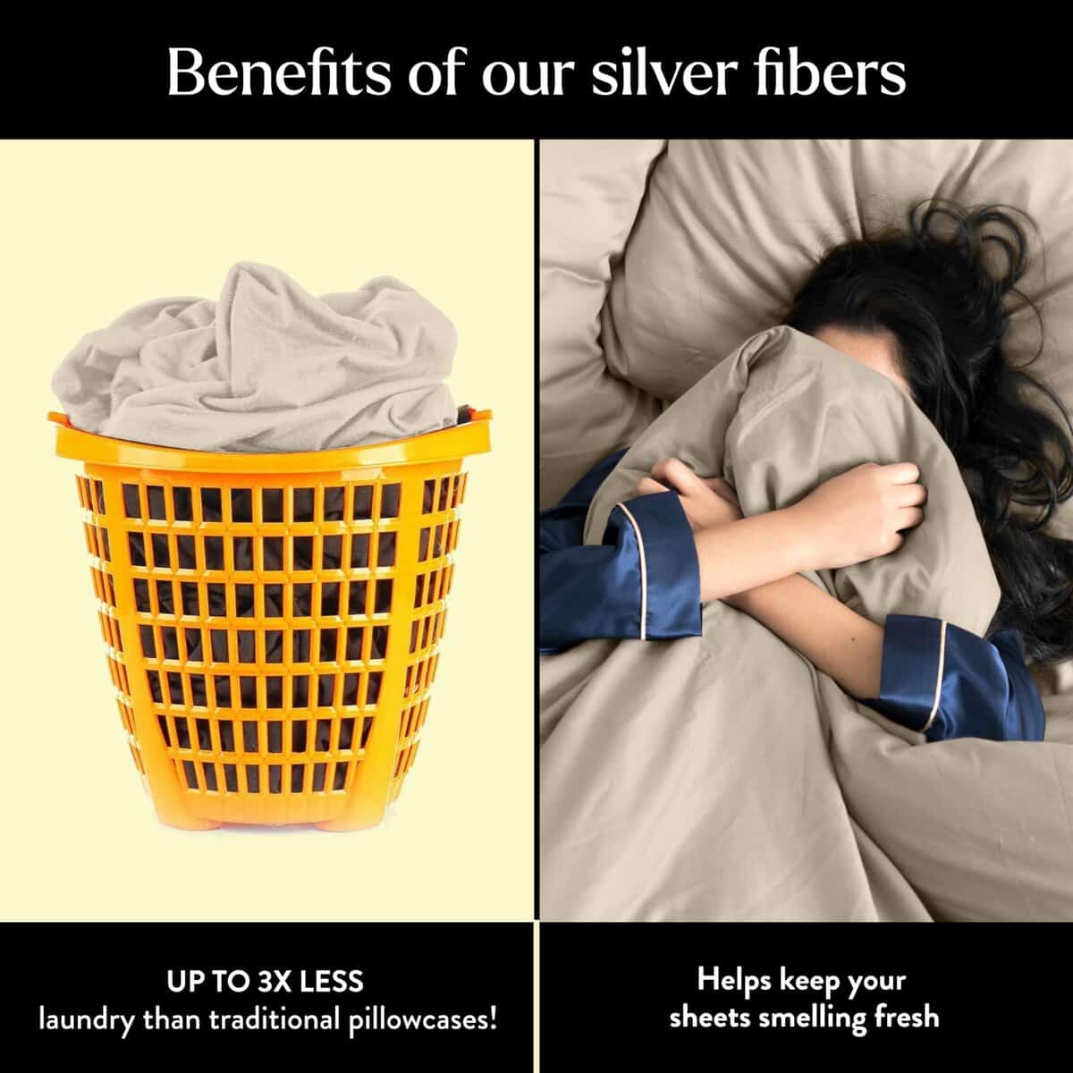 3. Limpieza Sin Esfuerzo: La infusión de plata mantiene nuestras fundas de almohada más limpias por más tiempo, minimizando las necesidades de lavandería. Simplemente lava a máquina y seca en secadora estas fundas de almohada para un cuidado sencillo.