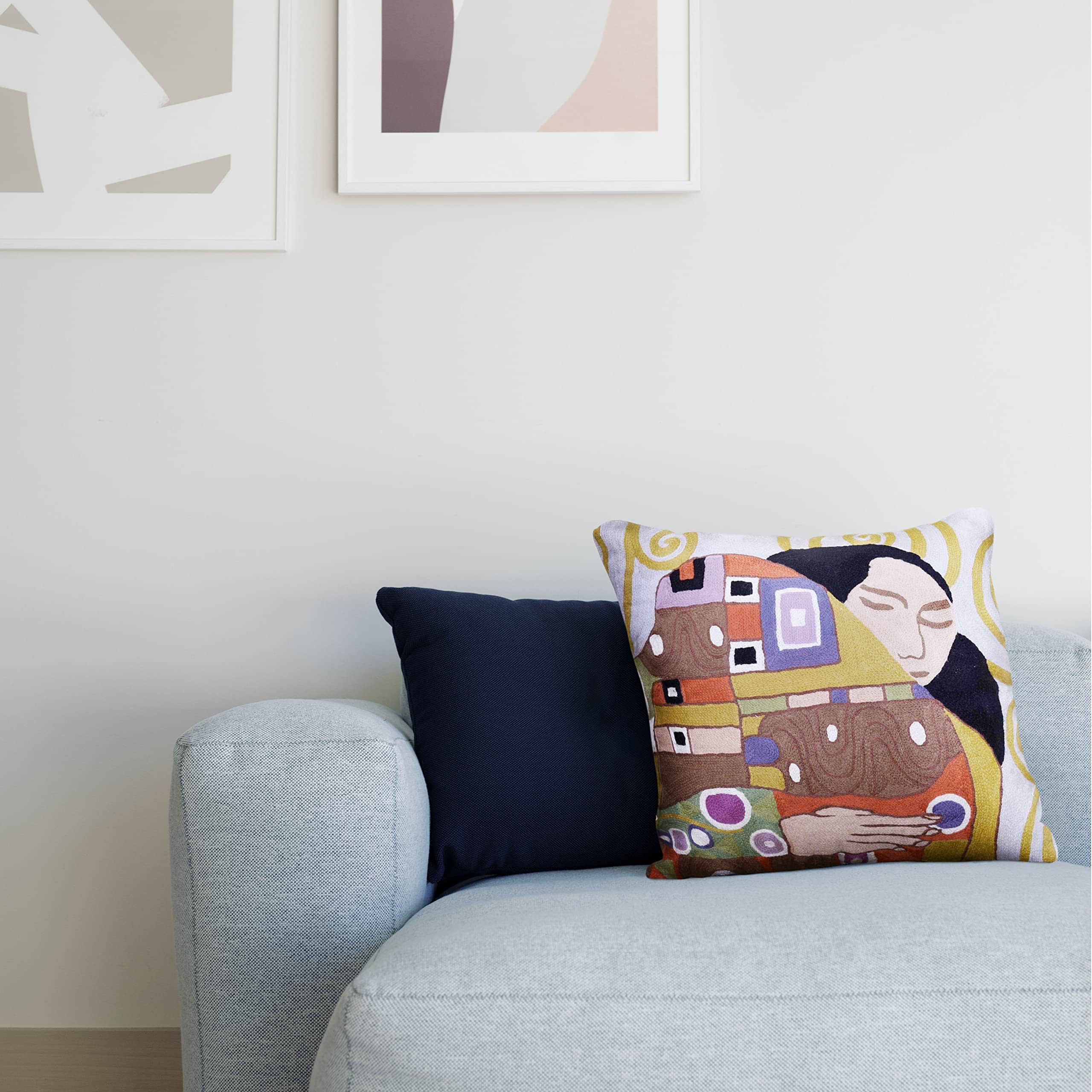 Estas coloridas fundas de almohada de art nouveau bordadas a mano serán perfectas para dar vida a una casa u oficina de estilo transicional o moderno. Hechas con materiales naturales de primera calidad, nuestras suaves fundas de almohada decorativas son cómodas, transpirables y fáciles de cuidar. El diseño Klimt inspirado en todos los almohadones modernos es ideal para decorar su sofá, cama, silla, sala de estar, dormitorio, porche, exteriores, oficina, etc.