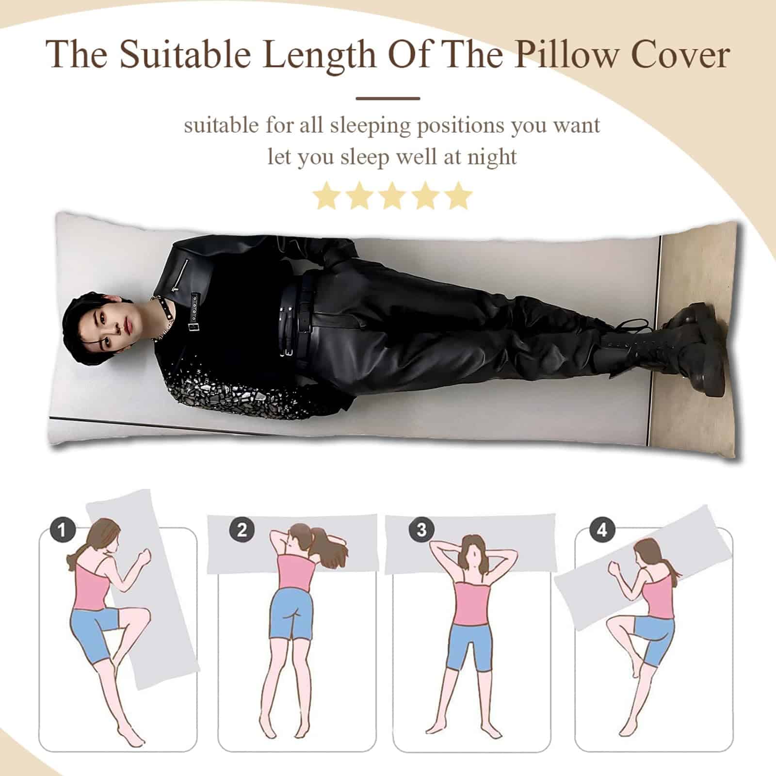 Tamaño de la funda de almohada 150cm x 50cm (59″ x 20″). ¡Funda de almohada solo, con cremallera cubierta! ¡Sin relleno! ¡Solo la funda de almohada!