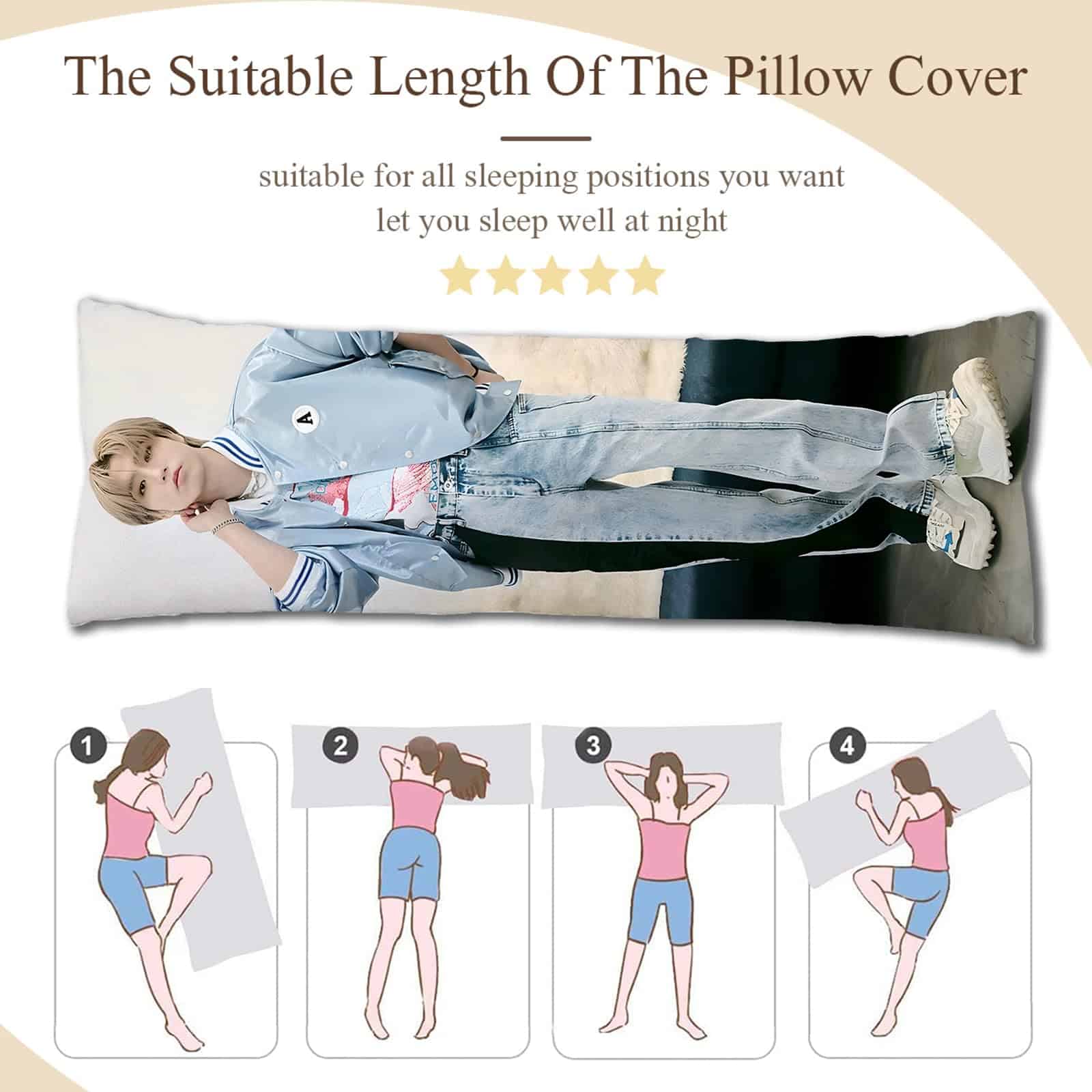 Tamaño de funda de almohada 150cm x 50cm (59″ x 20″). ¡Solo funda de almohada, con cremallera cubierta! ¡Sin interior! ¡Solo la funda de almohada! Nuestro funda de almohada está hecha de material de piel de melocotón. Tela de alta calidad, la piel de melocotón no se desvanece, grosor moderado, las manchas de sudor, manchas son fáciles de quitar. No dejará rastros después del lavado. Diseño avanzado de impresión. Impresión a doble cara, sin censura ni marcas de agua. Esta funda de almohada para cuerpo tiene una cremallera oculta en el lateral. El cierre de la cremallera funciona bien y garantiza que la almohada permanezca limpia. Esta funda de almohada para cuerpo se puede combinar en cualquier lugar; adecuada para coches, sofás, camas, oficinas, cafeterías, librerías, hoteles, clubes, fiestas, etc. El método de lavado permite tanto el lavado a mano como el lavado a máquina con agua fría o tibia. (No usar lejía ni planchar).