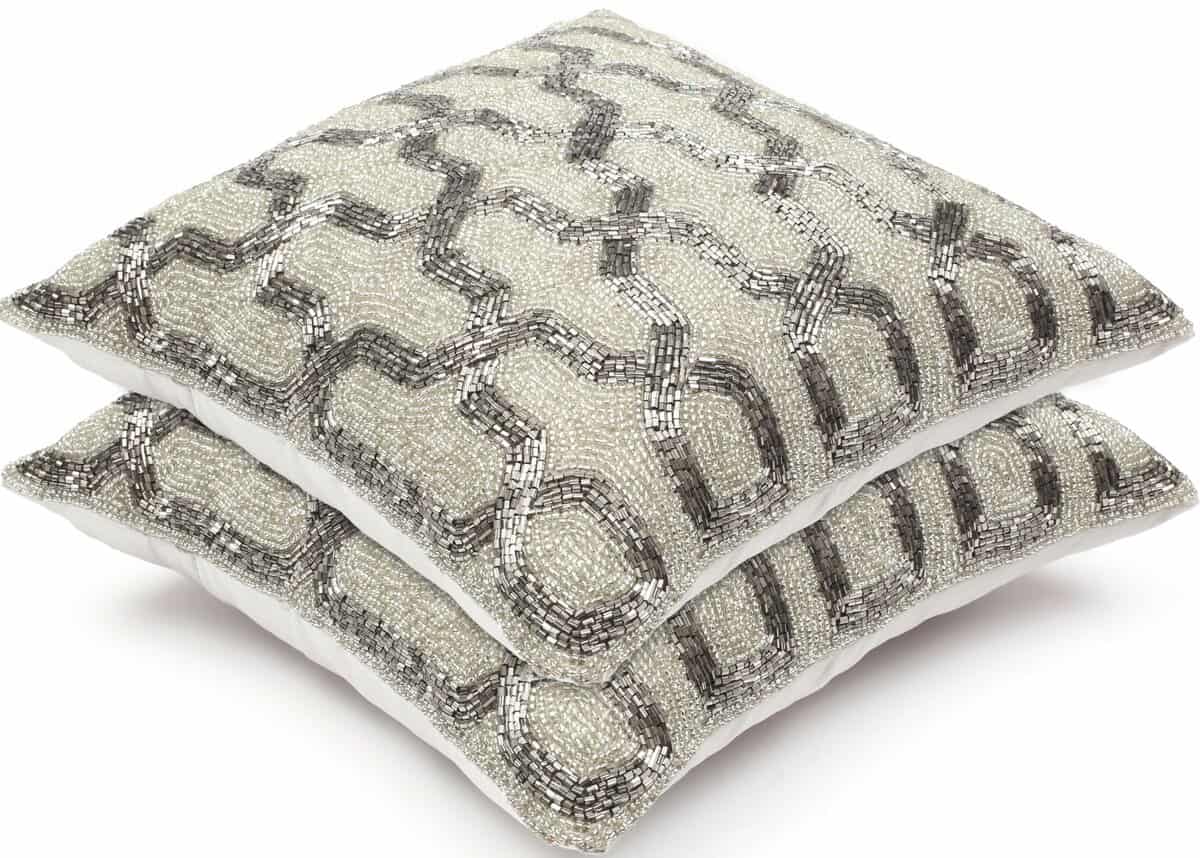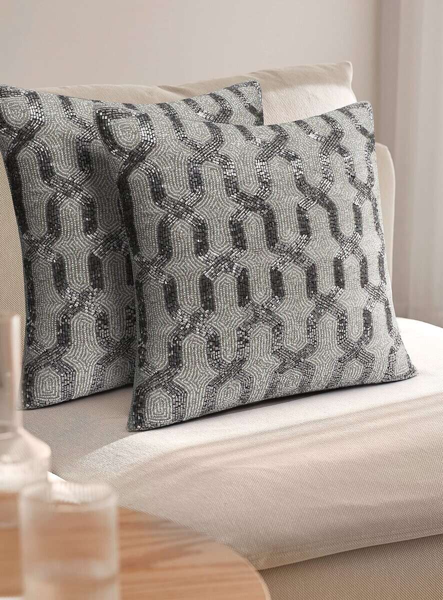 Funda de almohada plateada Light & Pro, tejida a mano con lujo suave y diseño atemporal. La parte delantera está hecha de vidrio al 100%, mientras que la parte trasera es 100% poliéster. Esta funda de almohada no incluye almohada ni relleno, solo la funda. Ideal para decorar sofás, accesorios de living, dormitorios, áreas exteriores y como regalos. La cremallera oculta con solapa facilita la inserción y extracción de los rellenos. Se recomienda limpiar solo con un paño húmedo para su cuidado.