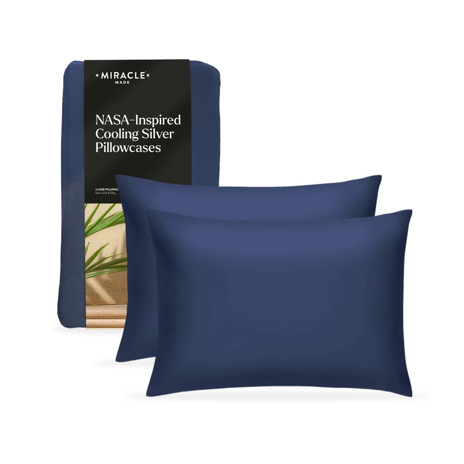 Funda de Almohada Refrigerante Miracle Made – Pack de 2 Fundas de Almohada Azul Marino – King/Cali King – Tejido Limpio y Fresco – Funda de Almohada Infundida con Plata de 300 Hilos – Protector Transpirable para Piel Sensible