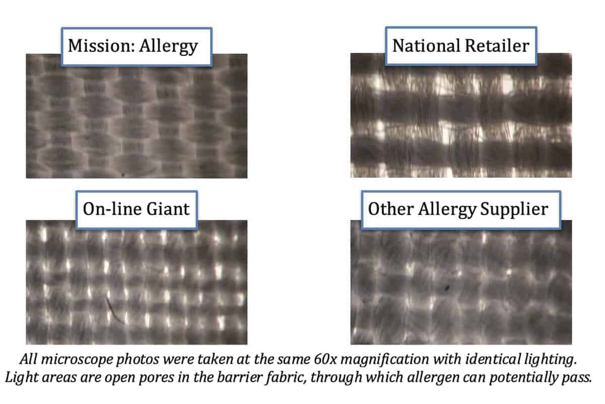 La tela de microfibra Premium de MISSION: ALLERGY es la barrera definitiva contra alergenos: totalmente efectiva, suave como la seda, liviana e imperceptible bajo la funda de la almohada. Tiene un tamaño de poro medio de 2 micrones para bloquear todos los alergenos, pero es permeable al aire, lo que la hace completamente cómoda para dormir. No es calurosa ni sudorosa, como las telas de cubierta hechas con membranas; no permite la salida de ningún alergeno, como muchas de las cubiertas de algodón; y no acumula alergenos en la superficie, como las cubiertas hechas con tela de toalla o no tejida. Las fundas de almohada resistente a alergenos de MISSION: ALLERGY están fabricadas con la construcción de costura de mayor calidad. Las diferencias son inmediatamente aparentes. Todos los bordes y costuras están cubiertos con costuras para una mayor durabilidad. Las cremalleras son de la más alta calidad, con una solapa de cremallera interior para evitar la salida de alergenos a través de la tela de la cremallera, y una solapa exterior para mayor comodidad. Estas fundas de grado médico son adecuadas para adultos o niños con asma alérgica, rinitis alérgica o eczema alérgico (o simplemente para una buena higiene). Son la funda de almohada definitiva resistente a alergenos para la comodidad, protección y durabilidad. Fabricada en 100% Microfibra de Poliéster Tejida.