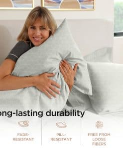 1. JUEGO DE FUNDAS DE ALMOHADA TAMAÑO ESTÁNDAR PARA CUBRIR PERFECTAMENTE TUS ALMOHADAS: Duerme pacíficamente manteniendo a raya los sudores nocturnos con nuestras fundas de almohada de 400 hilos frescas y ligeras. Cada juego de tamaño estándar contiene 2 fundas de almohada que miden 20″ de ancho x 30″ de largo. Diseñadas para ajustarse cómodamente a tus mullidas almohadas, estas fundas de almohada tienen un tamaño generoso para evitar que los rellenos de almohada se salgan.