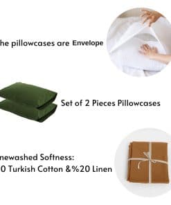 – DETALLES: Suavidad Lavada a la Piedra: La tela lavada a la piedra ofrece una sensación deliciosamente suave y vivida para una noche de sueño acogedora. Eleva tu experiencia de sueño con el lujoso juego de fundas de almohada de Viva Maison. Hechas de una mezcla de lino y algodón turco al 100%, nuestras fundas de almohada son suaves, transpirables y duraderas. Estilo Atemporal: El diseño clásico y las opciones de color neutro complementan cualquier estética de dormitorio. Ideal para regalar a seres queridos o darte un capricho.