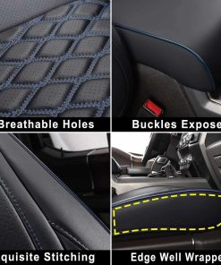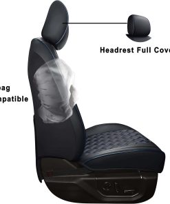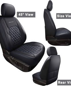 Funda de asiento de cuero sintético de alta calidad para F150 SuperCrew 2015-2024 y F250 F350 F450 Super Duty Crew Cab 2017-2024. Resistente al agua y duradero, protege el asiento de la suciedad, el polvo, los pelos de mascotas y los arañazos. Diseño elegante con perforaciones en el centro y un diseño único en 3D. Fácil de limpiar con un paño húmedo. Compatible con calefacción/enfriamiento originales, cinturones de seguridad y airbags. Bolsillos de almacenamiento para organizar pequeños objetos. Fácil instalación con correas flexibles, ganchos de plástico y manual de instrucciones incluido.