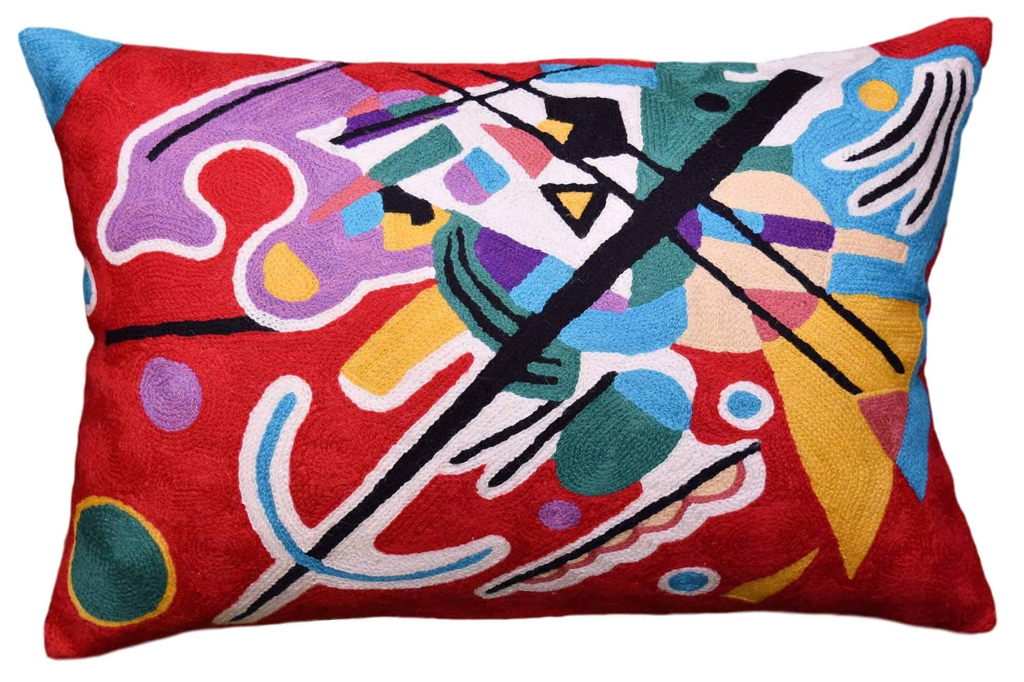 Funda de cojín abstracta roja Kandinsky Lumbar de Kashmir