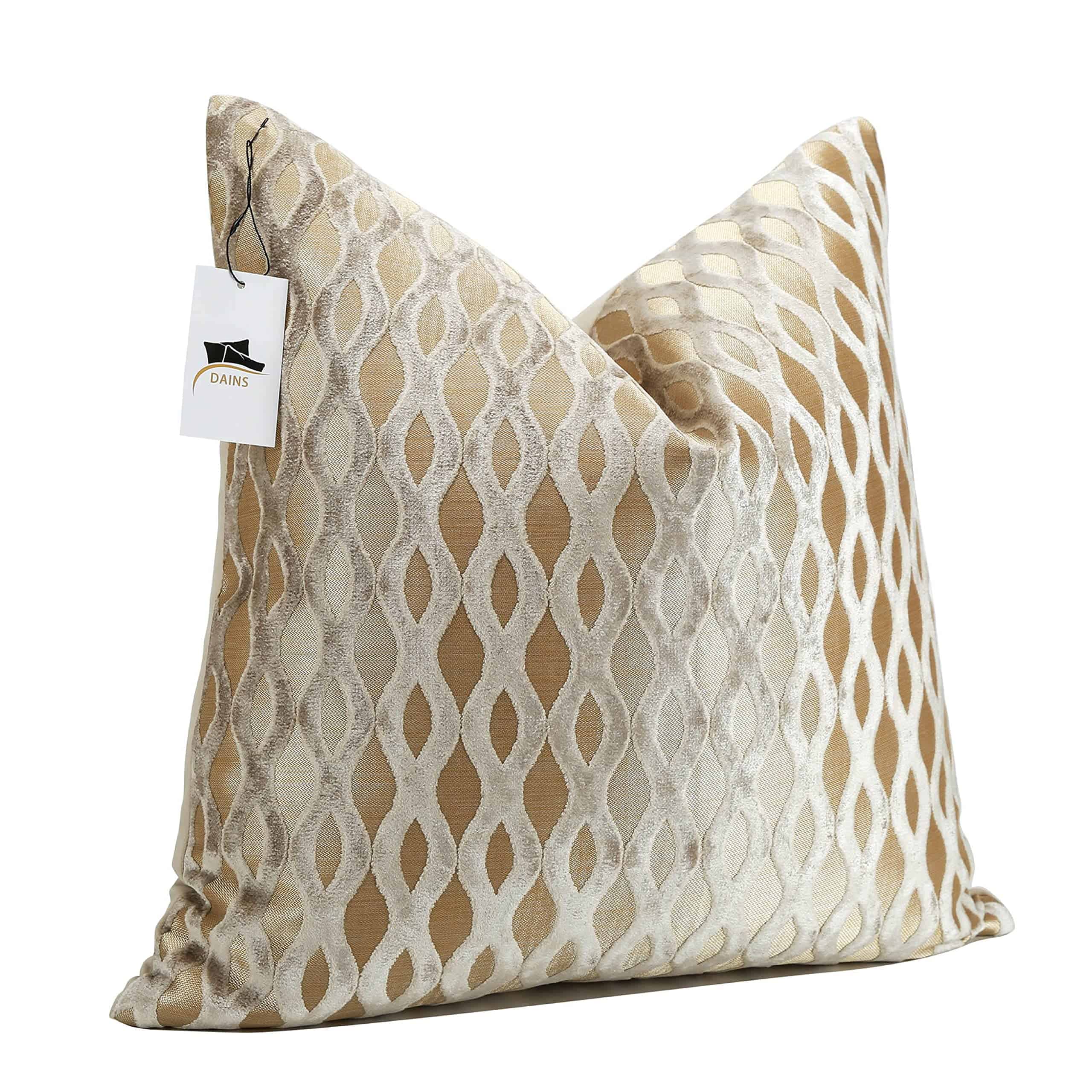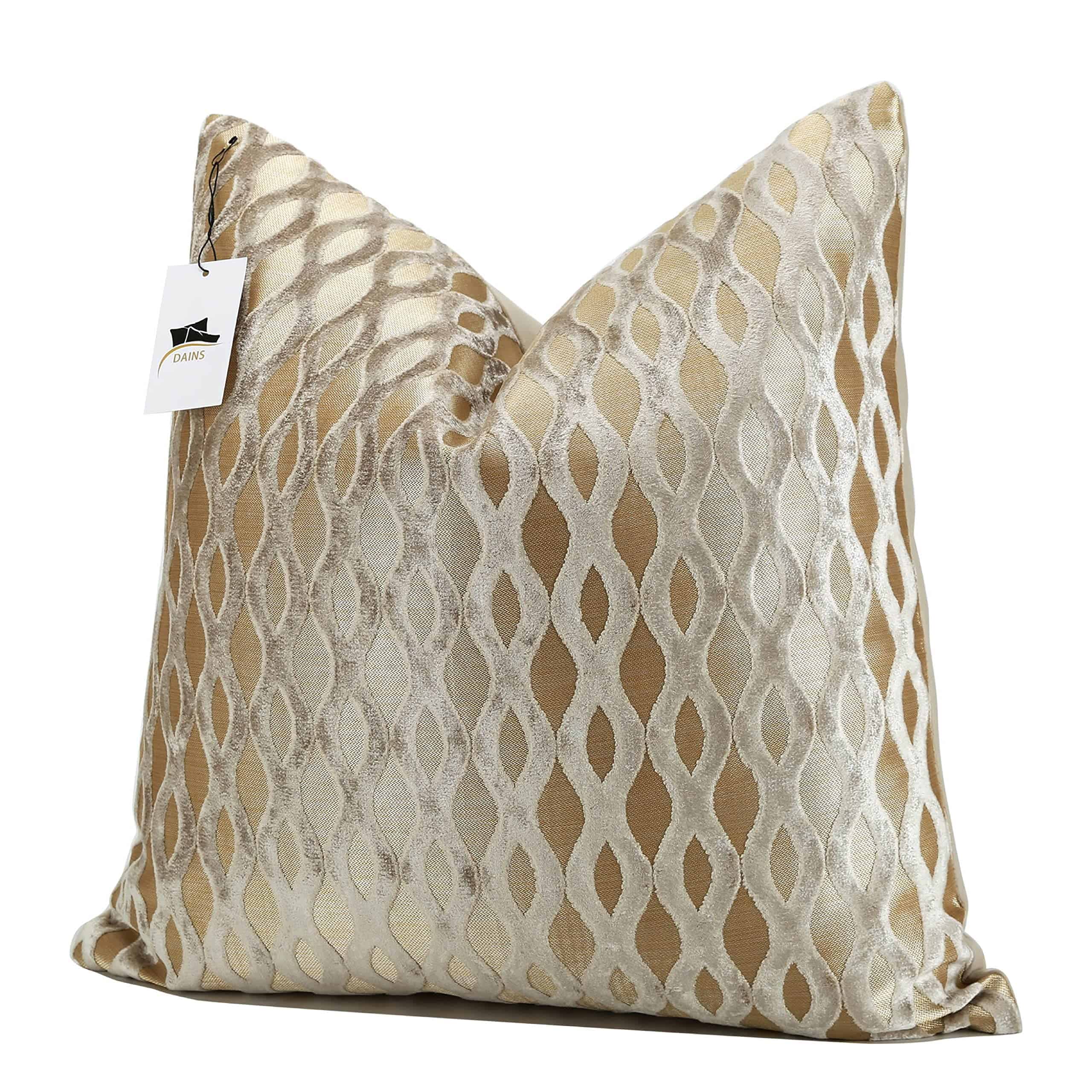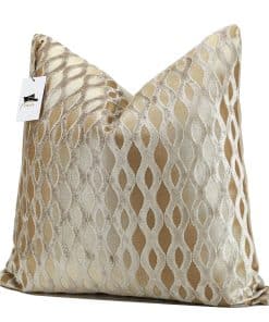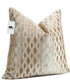 Funda de Cojín Beige con Dorado de 22×22, Funda de Almohada