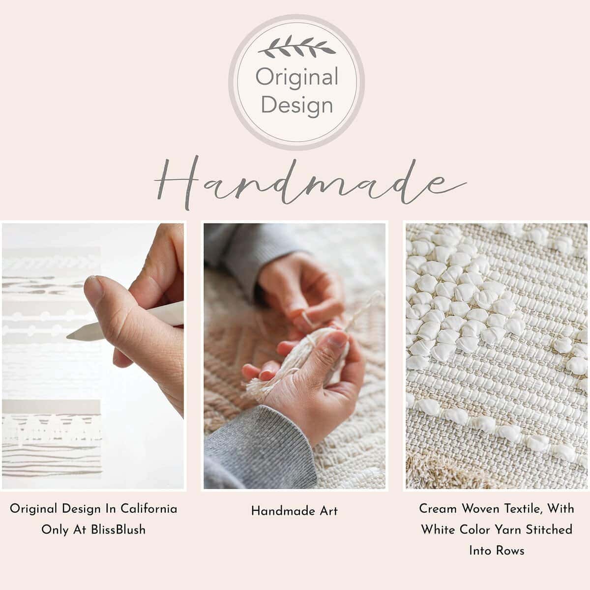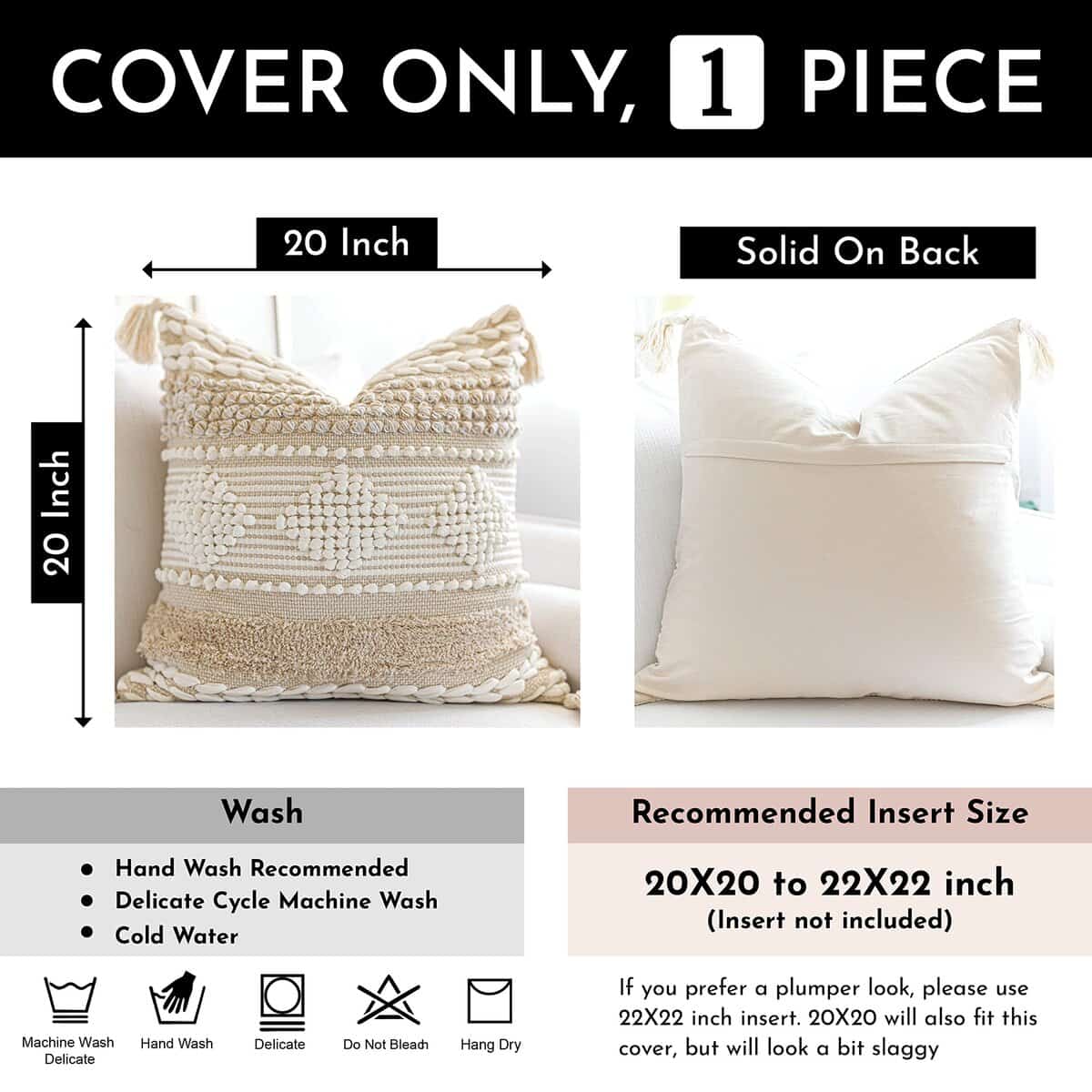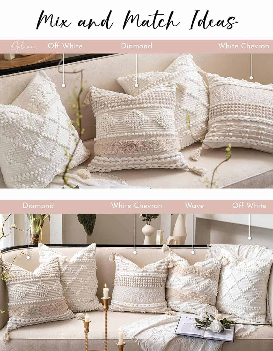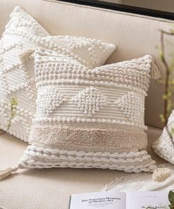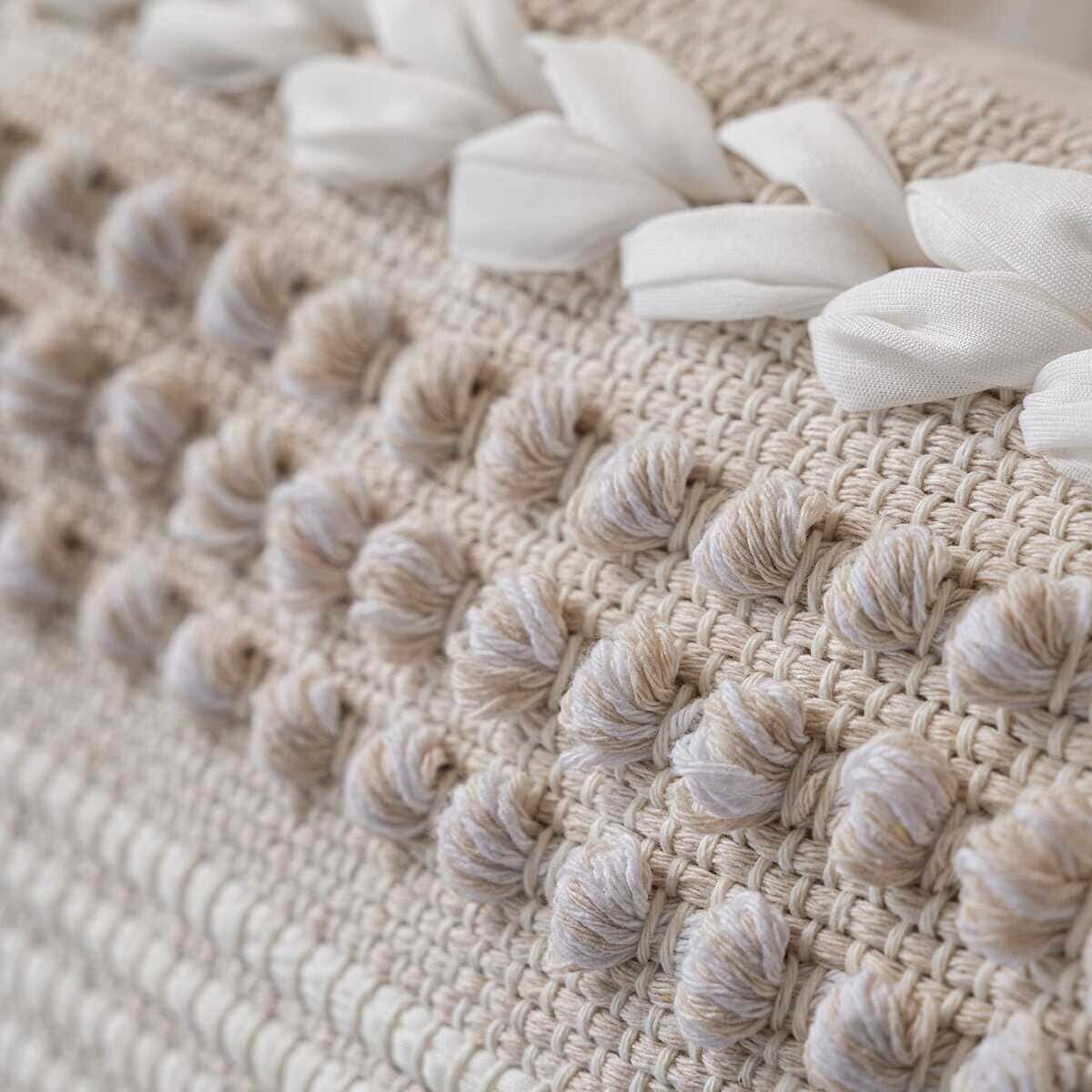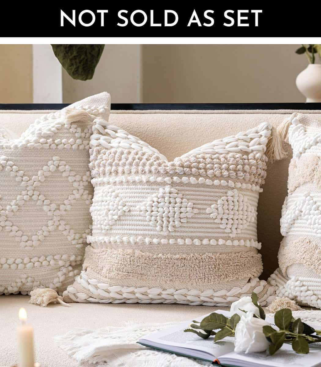 Funda de cojín blanco crema BlissBlush Boho 20X20, cojín